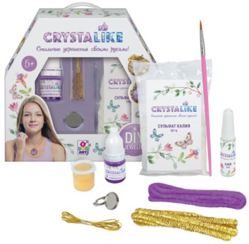 1toy CrystaLike — набор для создания украшений, который придется по душе девочке, увлекающейся творчеством. Он позволяет собственными руками сделать оригинальное украшение, начав с выращивания разноцветных кристаллов из сульфата калия. Также в комплекте есть основы, к которым крепятся кристаллы. Это две подвески разных размеров и форм с цепочкой и кольцом. Каждое украшение, изготовленное с помощью этого набора, будет уникальным, и его можно подарить родственникам и друзьям.