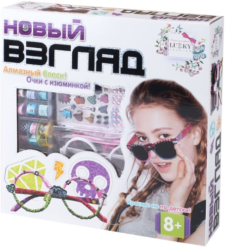 В набор для детского творчества Lukky Fashion: «Новый взгляд» входит все, что необходимо для создания уникальных модных очков. Это и разноцветные блестки, и ленты, а также другие элементы декора, с помощью которых можно украсить оправу так, чтобы она выглядела особенно ярко и необычно. С такими очками любой образ станет неповторимым! Аксессуар можно сделать для себя или в подарок другому человеку. Набор предназначен для девочек в возрасте от 8 лет, он стимулирует воображение и способствует развитию мелкой моторики.