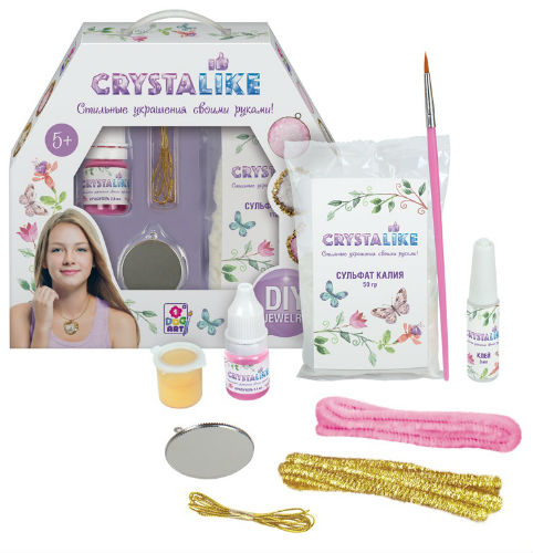 Набор для творчества 1Toy Crystalike для создания украшений (Т14371) позволяет вырастить разноцветные кристаллы, которые могут использоваться для декорирования различных аксессуаров. Комплект предназначен для юных модниц дошкольного и старшего возраста. Модель развивает творческие способности ребенка, а также внимательность, усидчивость и чувство стиля. Все элементы из набора изготовлены из нетоксичных материалов, что обеспечивает безопасность при повседневном применении. С помощью комплекта можно самостоятельно создать две подвески, а также сережки с собственным уникальным стилем. Аксессуары сохраняют первоначальную яркость цвета и потребительские свойства даже при многолетней эксплуатации.