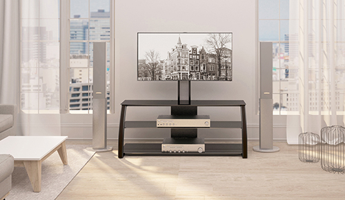 Стойка для ТВ Mart «Викинг К» подходит для вертикального закрепления устройств, которые выпускаются большинством современных брендов. Прочный металлический кронштейн снабжен большим количеством отверстий для креплений стандарта VESA и совместим с телевизорами, оснащенными экраном диагональю 22–65". В задней панели имеется канал, что помогает спрятать различные кабели.Для изготовления трех полок используется высококачественное закаленное стекло. Материал толщиной 5 мм способен выдержать большой вес, например, акустическую систему, DVD-проигрыватель или книги. Чтобы исключить появление царапин на тонированной поверхности, рекомендуется исключить применение моющих средств с абразивными частицами. Максимальная нагрузка на стойку для ТВ Mart «Викинг К» составляет 50 кг.