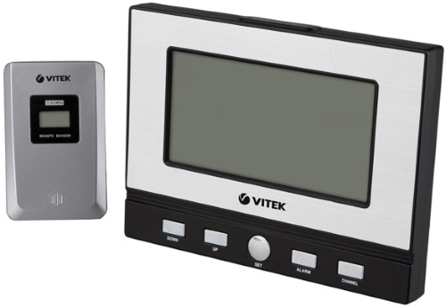 Метеостанция VITEK VT-3533 SR измеряет температуру внутри помещения и за пределами дома. Определение уровня влажности способствует тщательному контролю показателя: при необходимости это позволяет предпринимать меры для его нормализации. В комплектации предусмотрены основной блок и выносной датчик, который необходимо размещать на улице. Цифровой монохромный дисплей с голубой подсветкой отображает данные, включая фазу луны и прогноз погоды в виде символов.Модель можно использовать как часы и будильник. Осуществляется визуальное информирование о текущей дате и дне недели, что обеспечивает удобство эксплуатации. Для управления предназначены кнопки, расположенные под экраном. Источником питания метеостанции VITEK VT-3533 SR выступают три батарейки типа AA. Конструкцию легко расположить на столе или другой горизонтальной поверхности благодаря подставке.