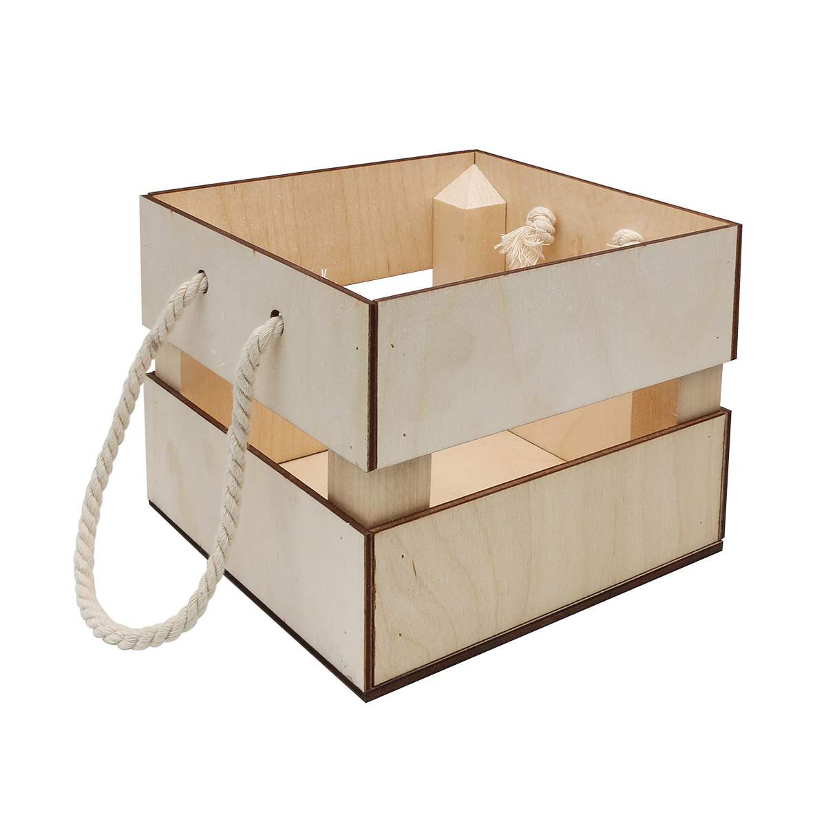 Деревянная заготовка Кашпо с ручками 15,6*15*12см, бел