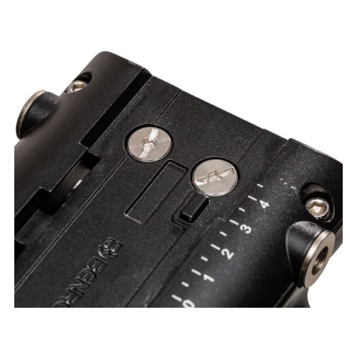 Удлиненная быстросъемная площадка поможет идеально сбалансировать вашу камеру в зависимости от используемого объектива и дополнительного оборудования. Цифровая разметка основания для площадки и боковой фиксатор позволяют быстро и точно установить центр тяжести камеры в нужном положении головы. Защитная функция блокировки площадки предотвращает падение камеры.