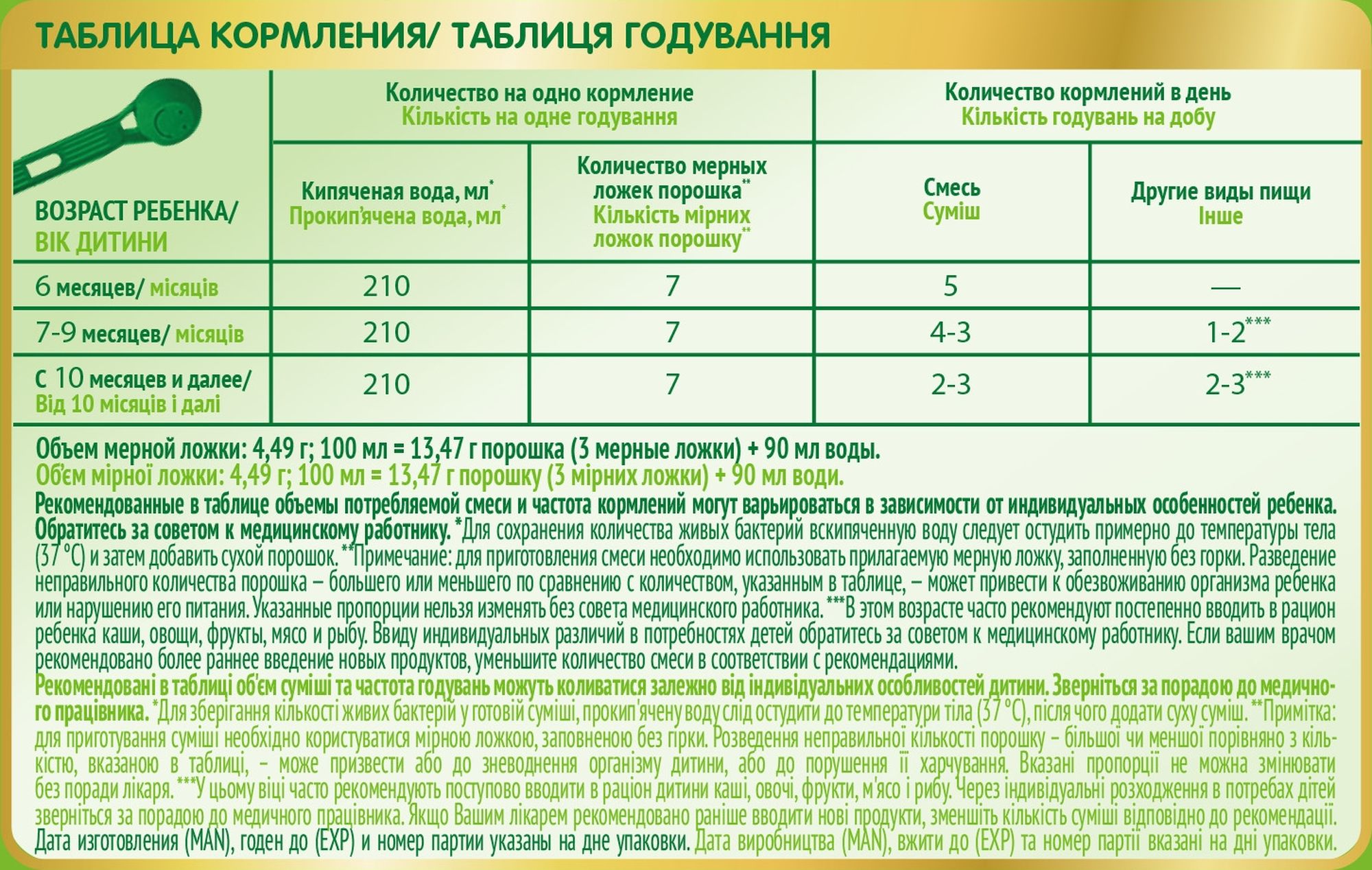 • Возраст ребенка от 6 до 12 месяцев