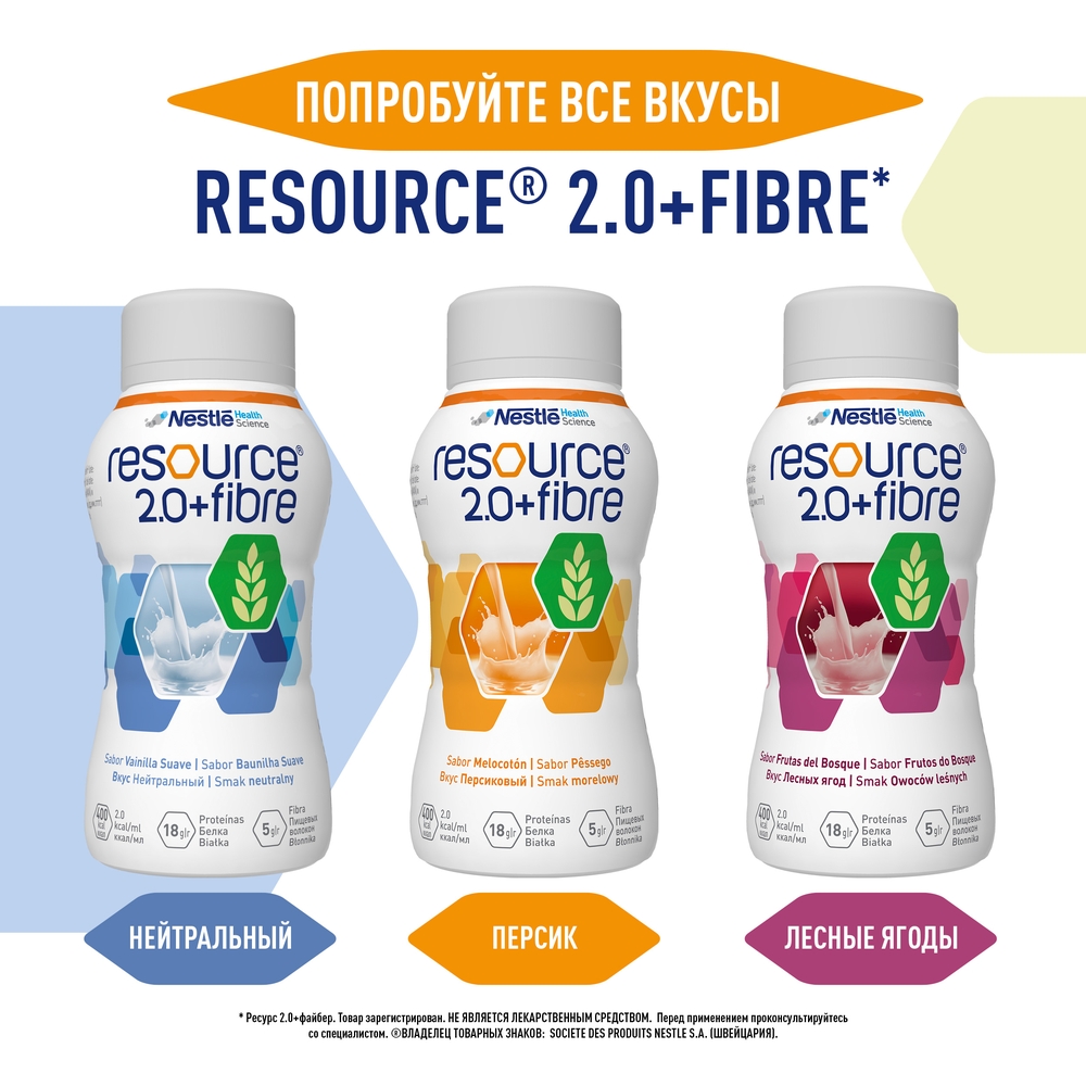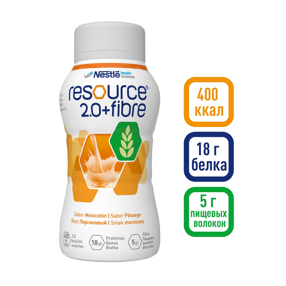 Смесь Nestle Resource 2.0+Fibre со вкусом персика от 3 лет 200 мл