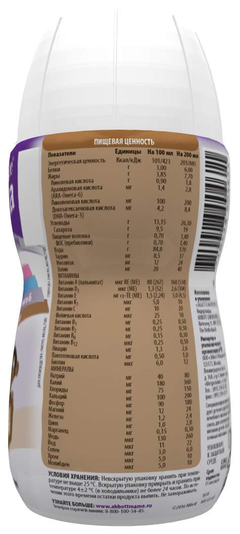 - Состав Вода, сахароза, мальтодекстрин, растительные масла (соевое масло, высокоолеиновое подсолнечное масло, масло со среднецепочечными триглицеридами (СЦТ)), концентрат молочного белка, какао порошок