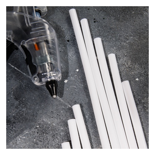 Клеевой стержень предназначен для склеивания разных поверхностей в любом сочетании: из дерева, пластмассы, картона, бумаги, металла, керамики и т. д. Клеевой стержень состоит из смолы ЭВА, поэтому он нетоксичен, не выделяет запахов и не содержит в своем составе растворителей. Время застывания клея — 40-60 секунд, что не заставит долго ждать, когда поверхность будет готова к дальнейшей обработке или использованию. Клей водоустойчив, поэтому поверхности будут склеены почти в любых обстоятельствах.