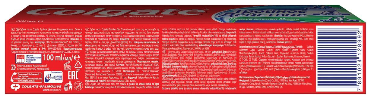 • Состав набора КОЛГЕЙТ Зубная паста Тройное действие 100мл