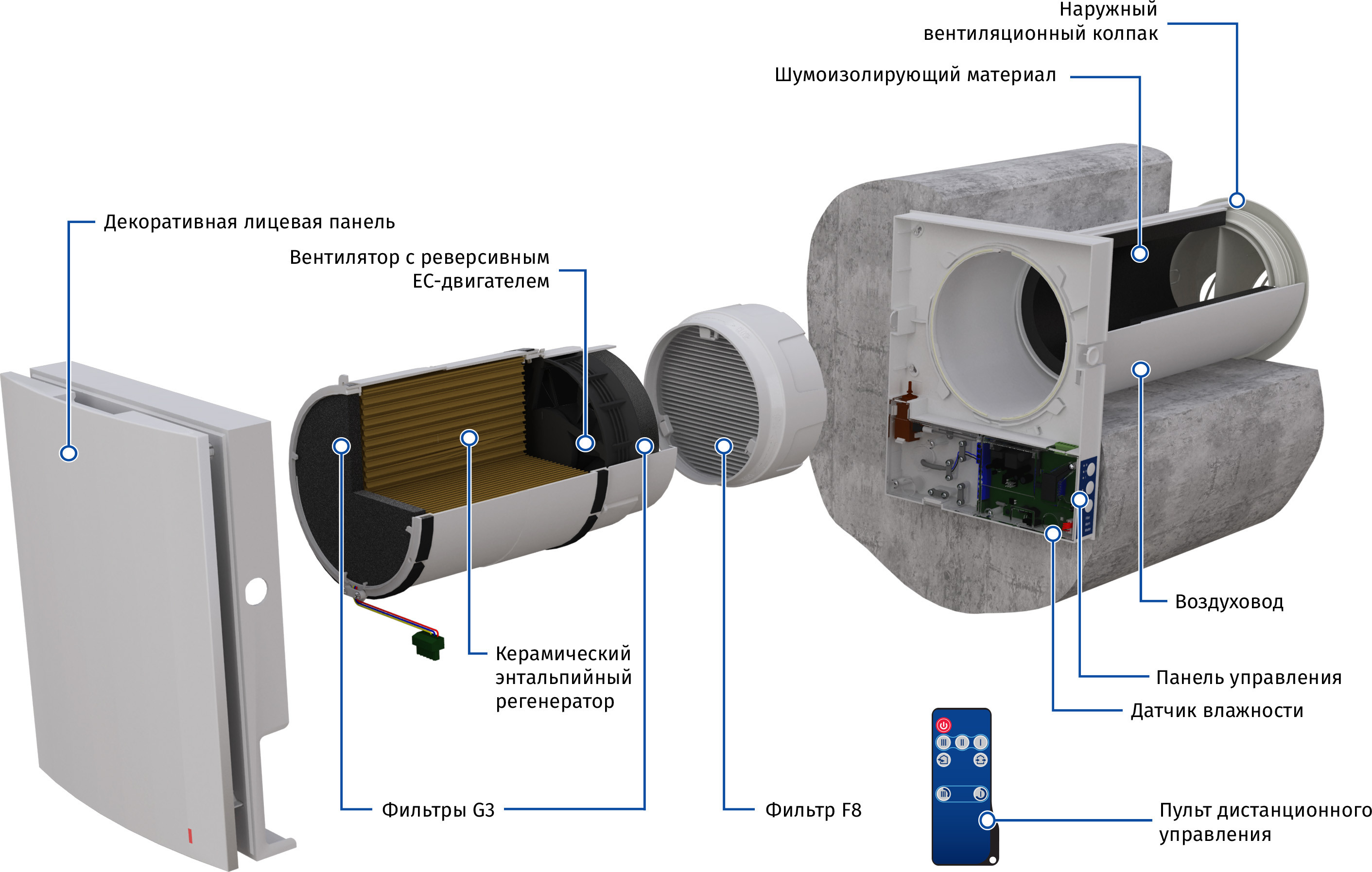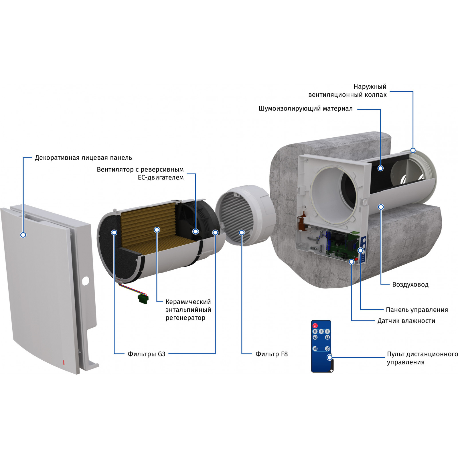 ОсобенностиРежим работы: приток и вытяжка, только вытяжка, только приток; Оснащение и функции: датчик влажности, индикатор работы, переключение скоростей; Расход воздуха :15, 30, 50 м / час; Эффективность рекуперации тепла: 82, 90, 97 %