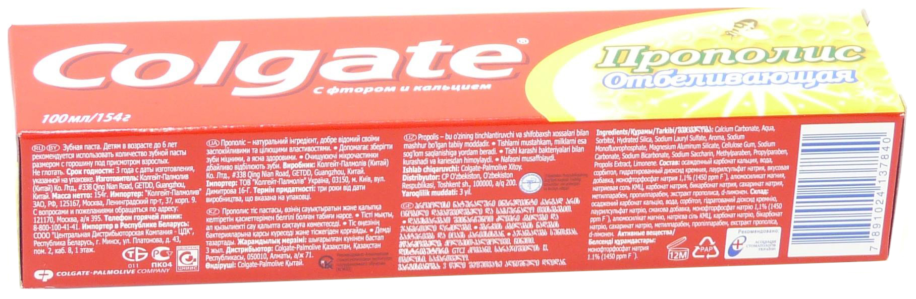 - Состав набора КОЛГЕЙТ Зубная паста Прополис отбеливающая 100мл