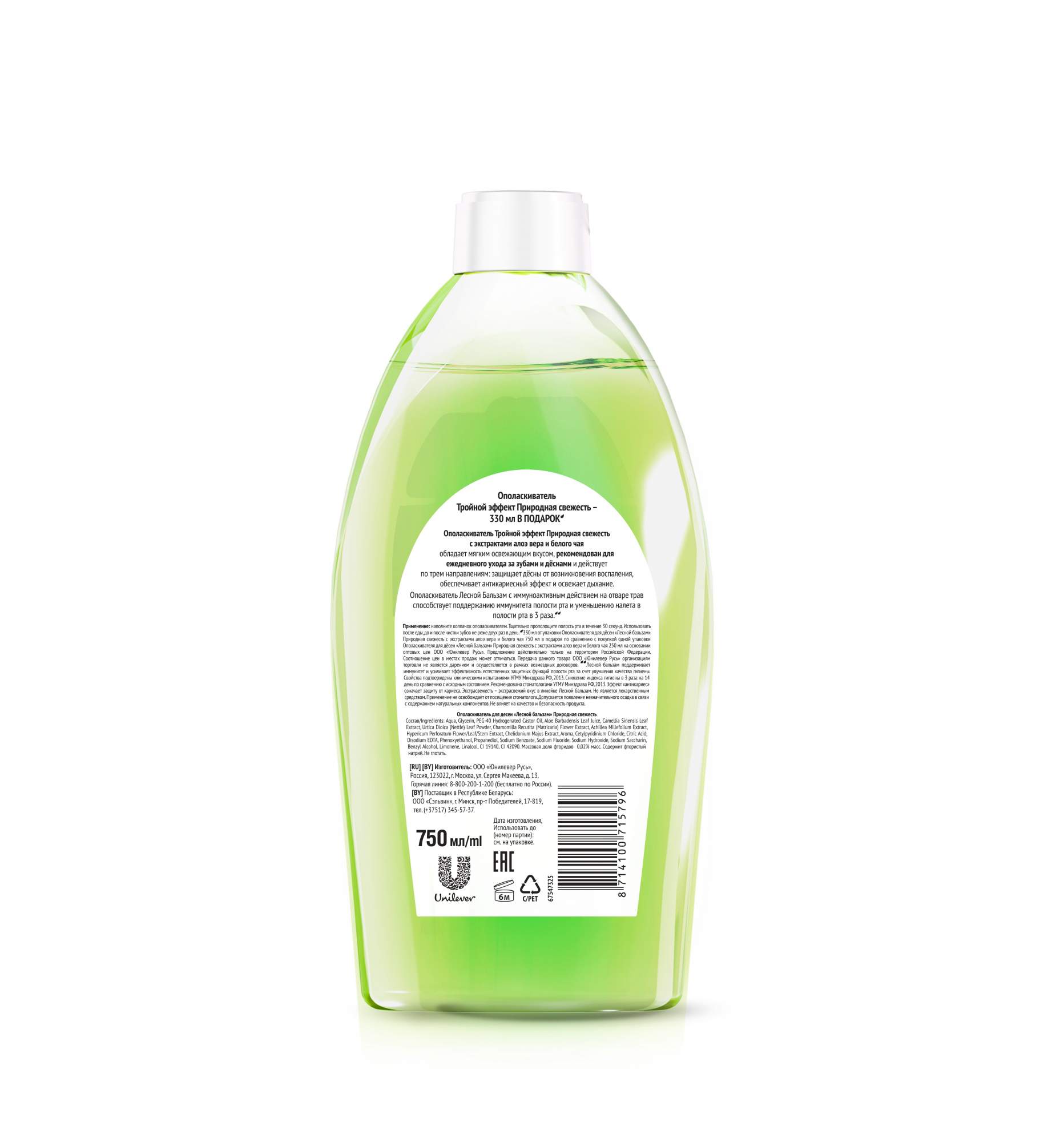 - Состав Aqua, Glycerin, PEG-40 Hydrogenated Castor Oil, Aloe Barbadensis Leaf Juice, Camellia Sinensis Leaf Extract, Abies Sibirica Leaf Extract, Urtica Dioica (Nettle) Leaf Powder, Chamomilla Recutita (Matricaria) Flower, Achillea Millefolium Extract, Hypericum Perforatum Flower/Leaf/Stem Extract, Chelidonium Majus Extract, Sodium Fluoride, Sodium Saccharin, Cetylpyridinium Chloride, Sodium Hydroxide, Citric Acid, Disodium EDTA, Aroma, Propanediol, Benzyl Alcohol, Phenoxyethanol, Sodium Benzoate, Limonene, Linalool, CI 19140, CI 42090.