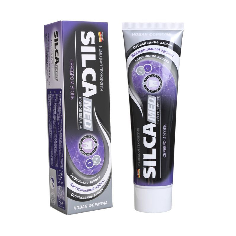 - Состав набора Зубная паста SILCAMED Серебро и уголь