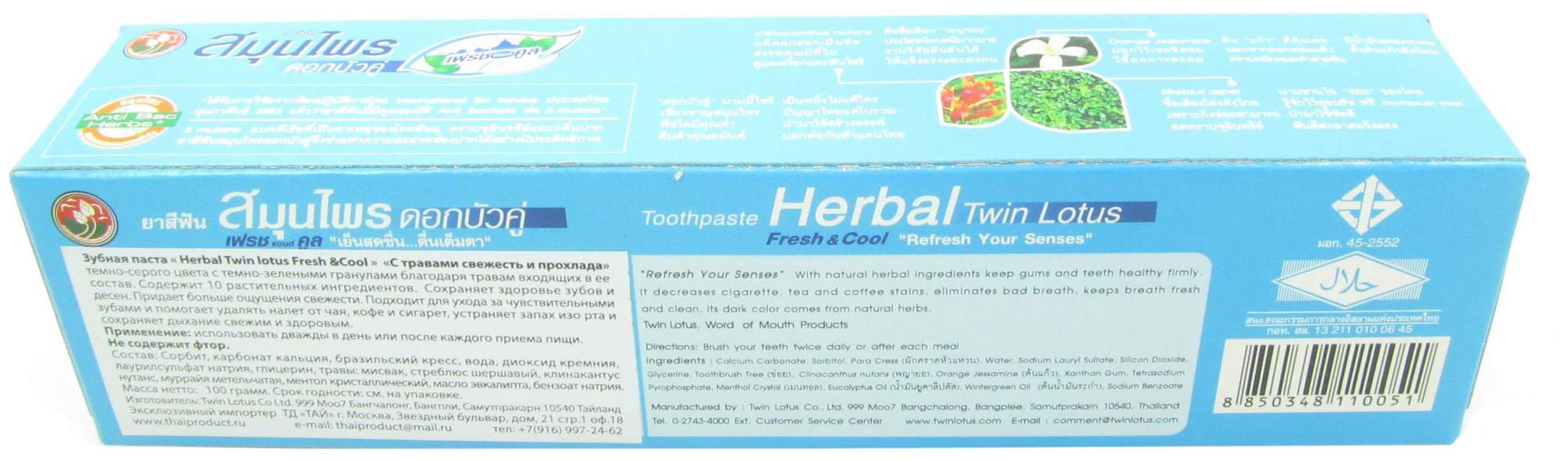 Зубная паста Twin Lotus Herbal Fresh&Cool 100 г