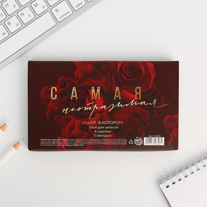 Набор: блок бумаги, фигурные скрепки, стикеры закладки "Самая неотразимая"