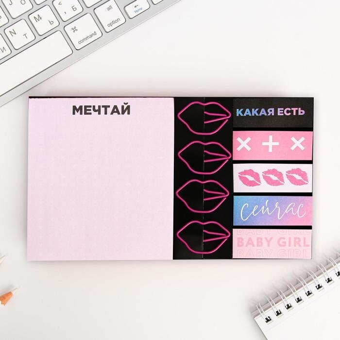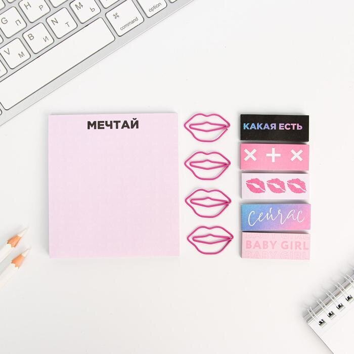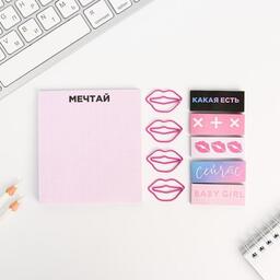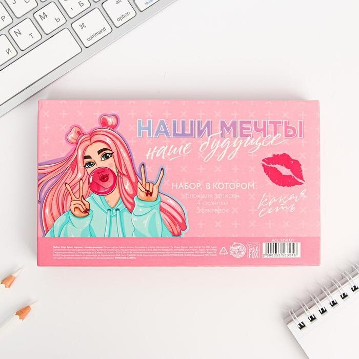 Набор: блок бумаги, фигурные скрепки, стикеры закладки "Наши мечты, наше будущее"