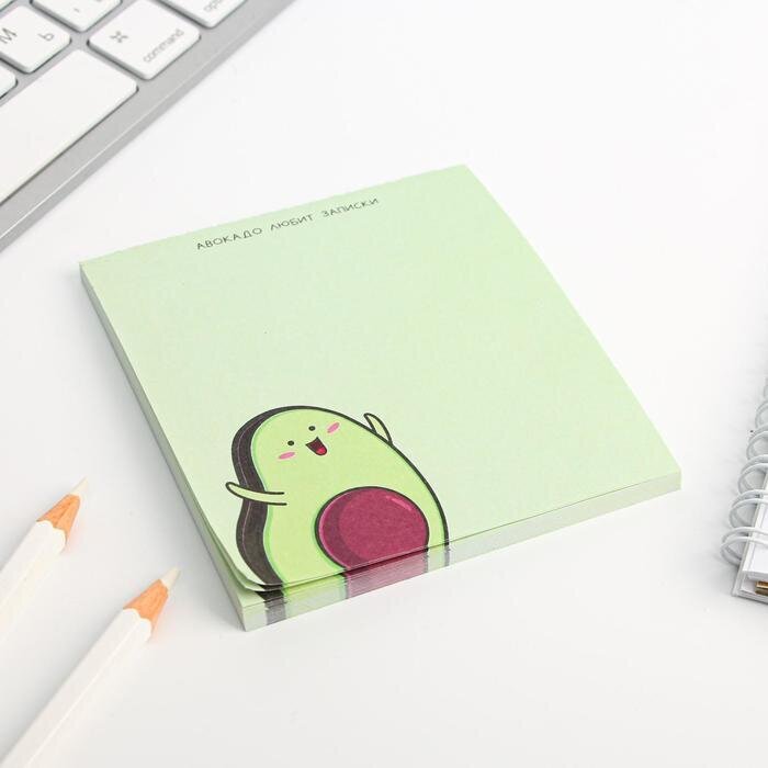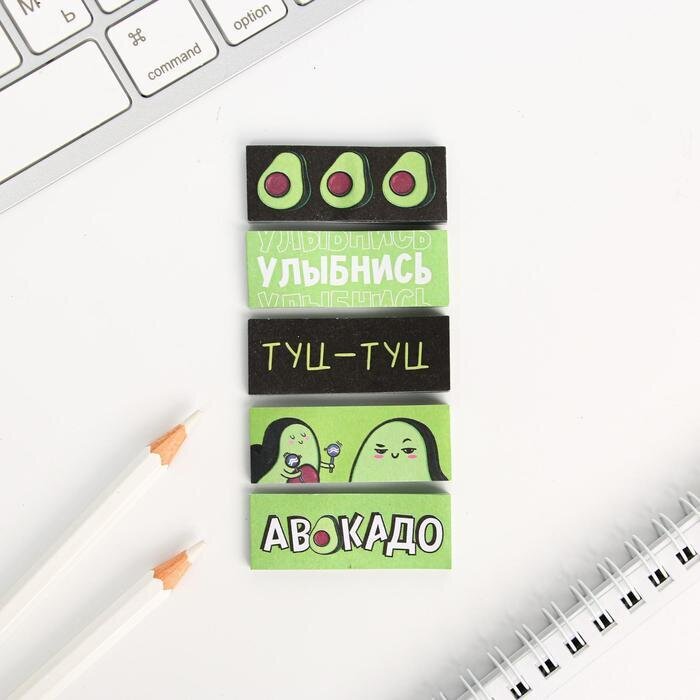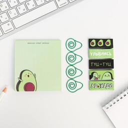 Набор: блок бумаги, фигурные скрепки, стикеры закладки "Авокадо бум"