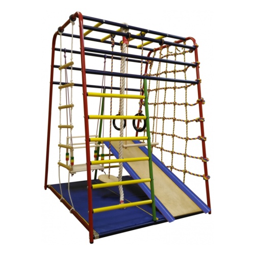 Страна происхождения: Россия Способ установки: напольный Материал: металл Высота: 1,47 м Занимаемая площадь: 1,31 х 1,07 м Диаметр трубы: 25 мм Толщина металла: 1,5 мм Шаг ступени: 0,20 м Тип ступени: металл с ПВХ покрытием Допустимая нагрузка на навесное оборудование: 50 кг Комплектация: горка с мягкими бортиками, качели, кольца гимнастические, трапеция, тарзанка, лестница веревочная 7 ступеней, канат, сетка, мат Допустимая нагрузка: 50 кг Возрастная категория: 1+ Вес комплекса: 30 кг Упаковка: картонная коробка Размеры упаковки (ДхШхВ): 1 место 1,37 х 0,50 х 0,20 м