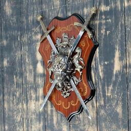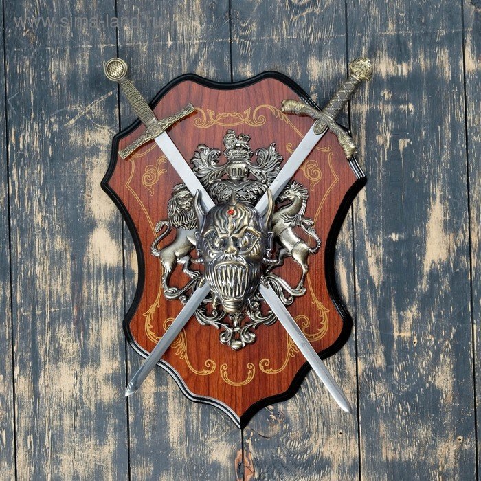 Сувенирное оружие «Геральдика на планшете» с изображением головы демона, два меча