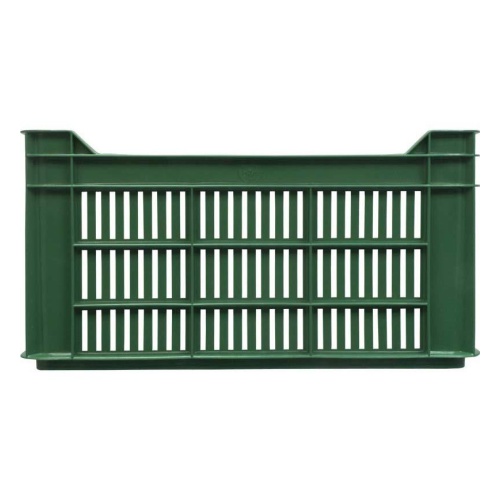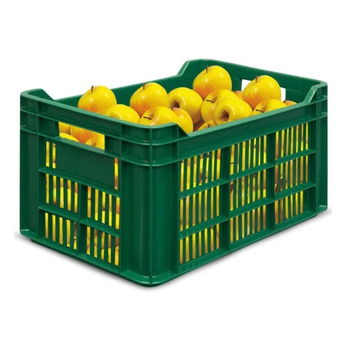 Ящик (лоток) фруктовый штабелируемый, изготовлен из полиэтилена низкого давления зеленый. Внешний размер: 500×300×264 мм, внутренний размер: 470×275×225 мм. Объём: 30 л. Вес: 1,31 кг. Ящик не вкладываемый, штабелируемый с перфорированными боковыми стенками и дном. Предназначен для эффективного хранения, обработки и транспортировки продукции различного назначения. Ящики предназначены для нагрузок до 20 кг. Полностью перфорированные полиэтиленовые ящики часто применяются как фруктовые или овощные ящики в небольших продуктовых магазинах или в супермаркетах.