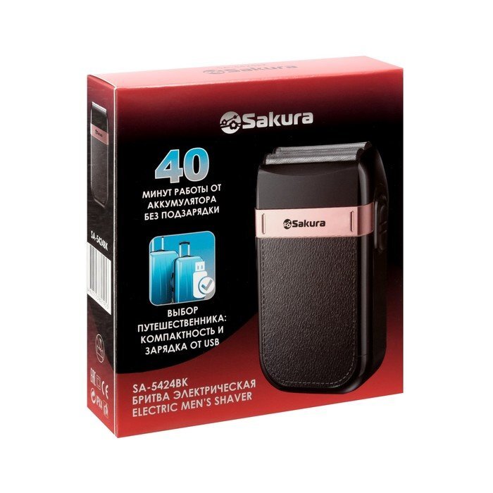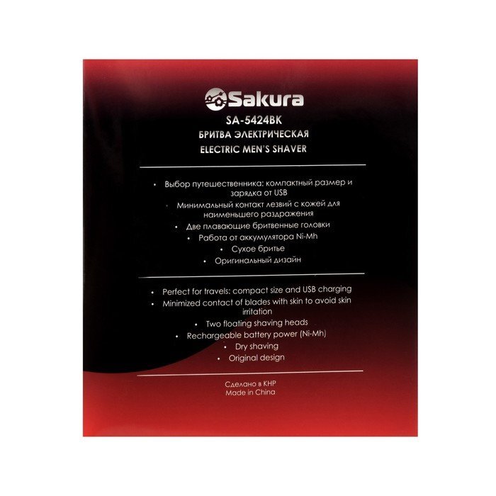 Бритва Sakura SA-5424BK, АКБ, роторная, 2 плавающие головки, сухое бритьё