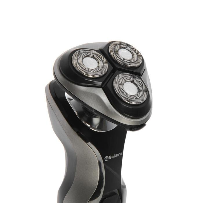 Электробритва Sakura SA-5421BS, роторная, 3 головки, сухое бритьё, АКБ, серебристо-черная