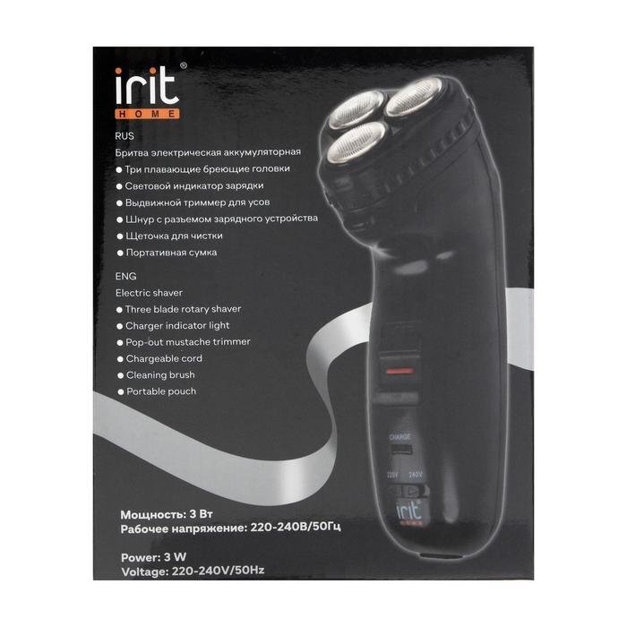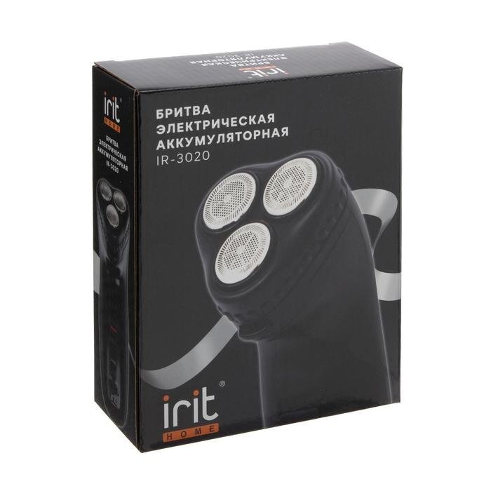 Электробритва Irit IR-3020, 3 Вт, АКБ, роторная, 3 бритвенные головки, чёрная