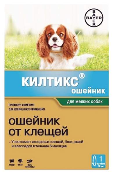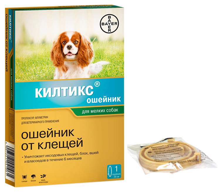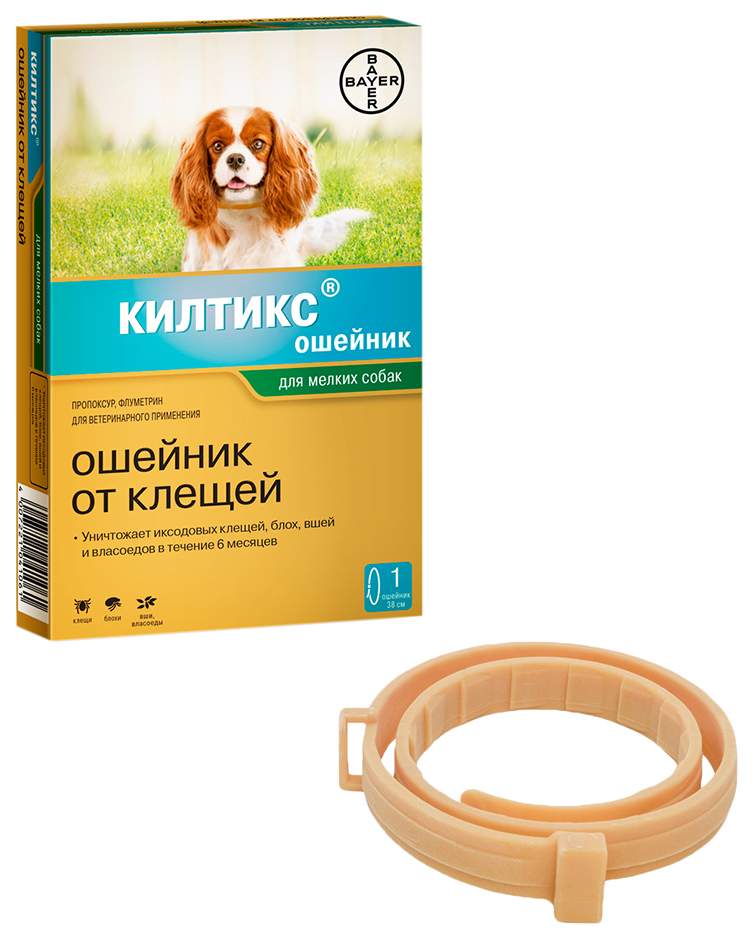 Ошейник для мелких собак против блох, власоедов, вшей, клещей Bayer Килтикс желтый, 38 см