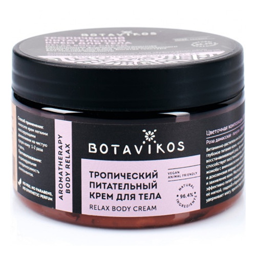 Крем для тела Botavikos Тропический питательный, 250 млТропический питательный крем серии Relax с витамином F forte для восстанавливающего ухода и питания кожи. 97,4% натурального происхождения.