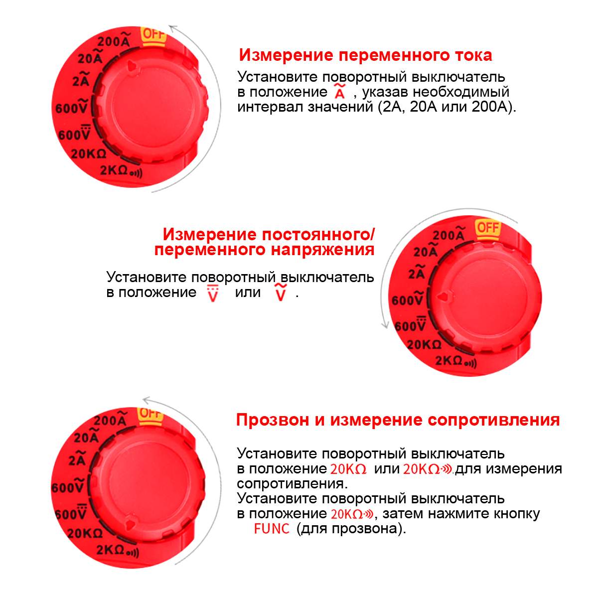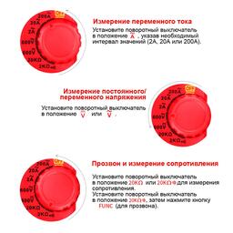 - Измерения напряжение переменного тока; напряжение постоянного тока; сила переменного тока