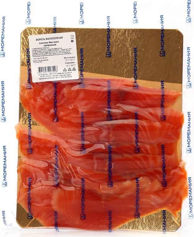 - Состав форель, соль, консервант Е202, Е-211