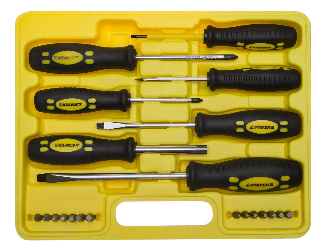 - Комплект поставки 6 отверток, 15 бит, рукоятка
