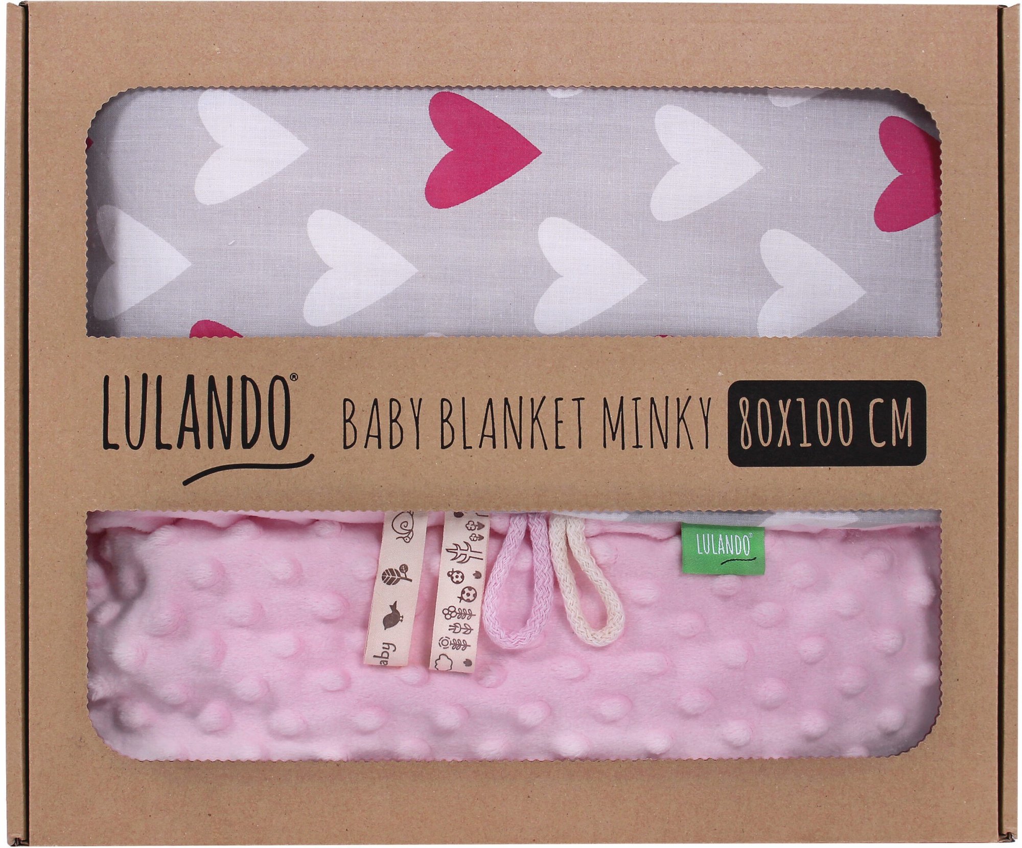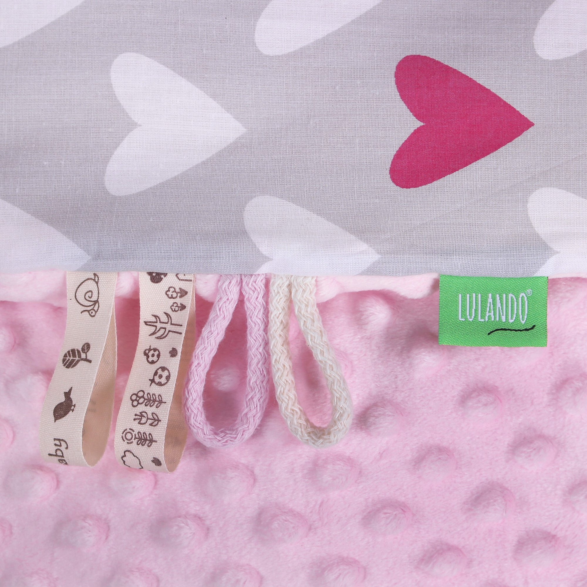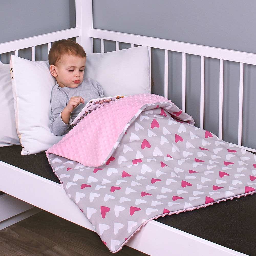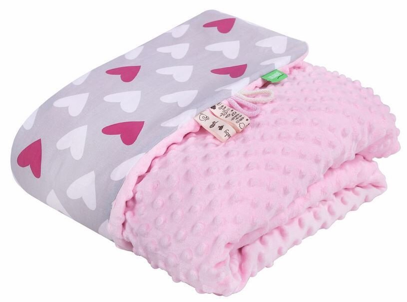 Lulando Minky Baby Blanket Pink/Grey With Hearts 80x100cm