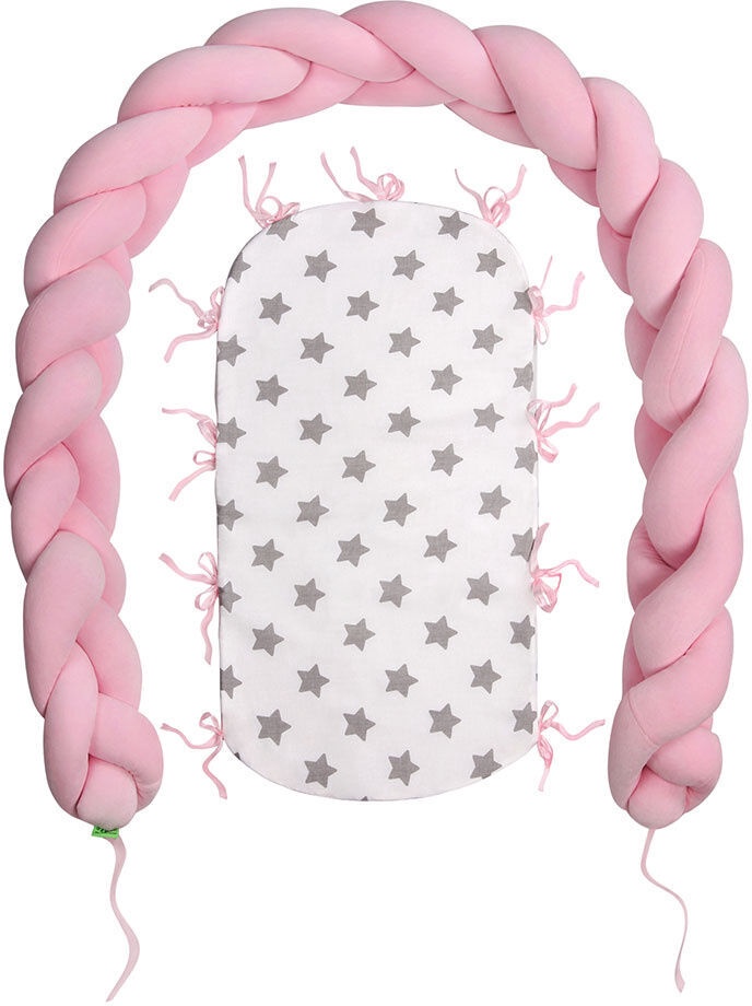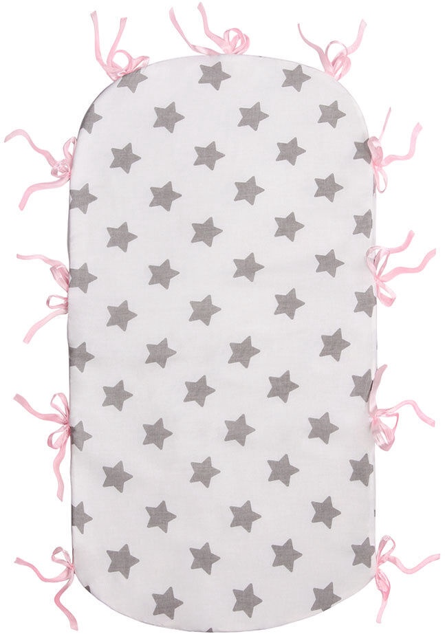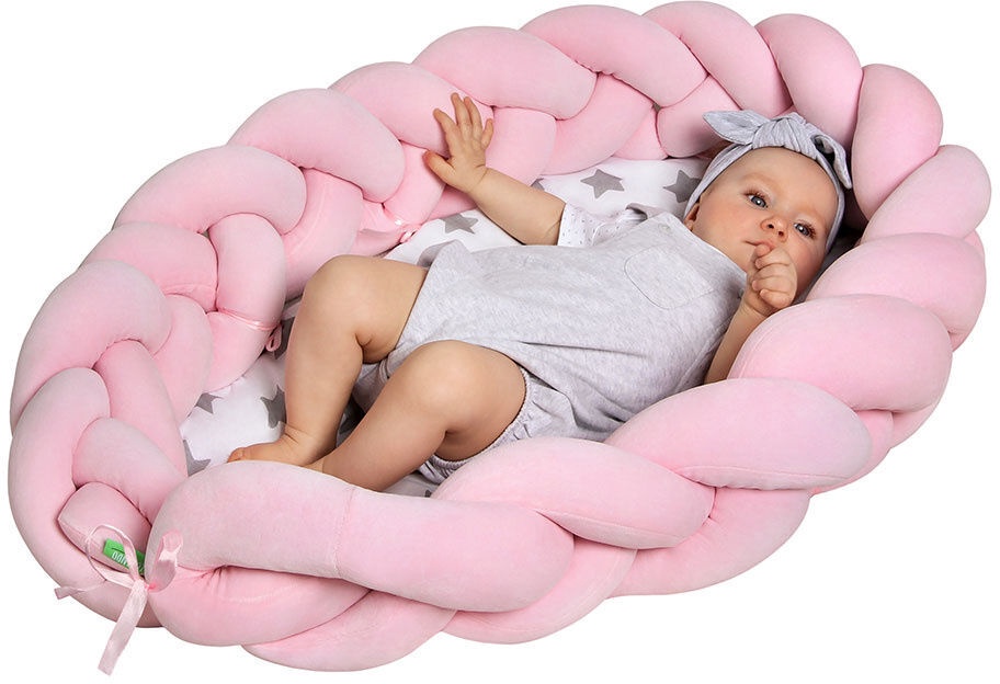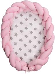 Lulando Multifunctional Braid Welur Baby Nest Pink/Grey Stars On White