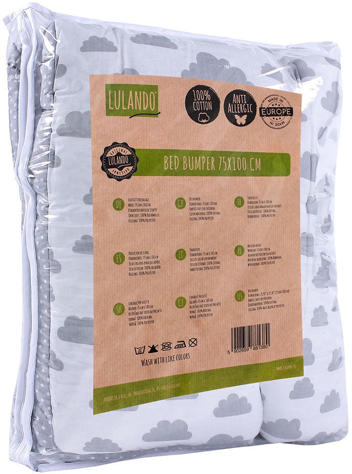 Lulando Playpen Mat For Children Grey With Dots/White With Clouds 75x100cm