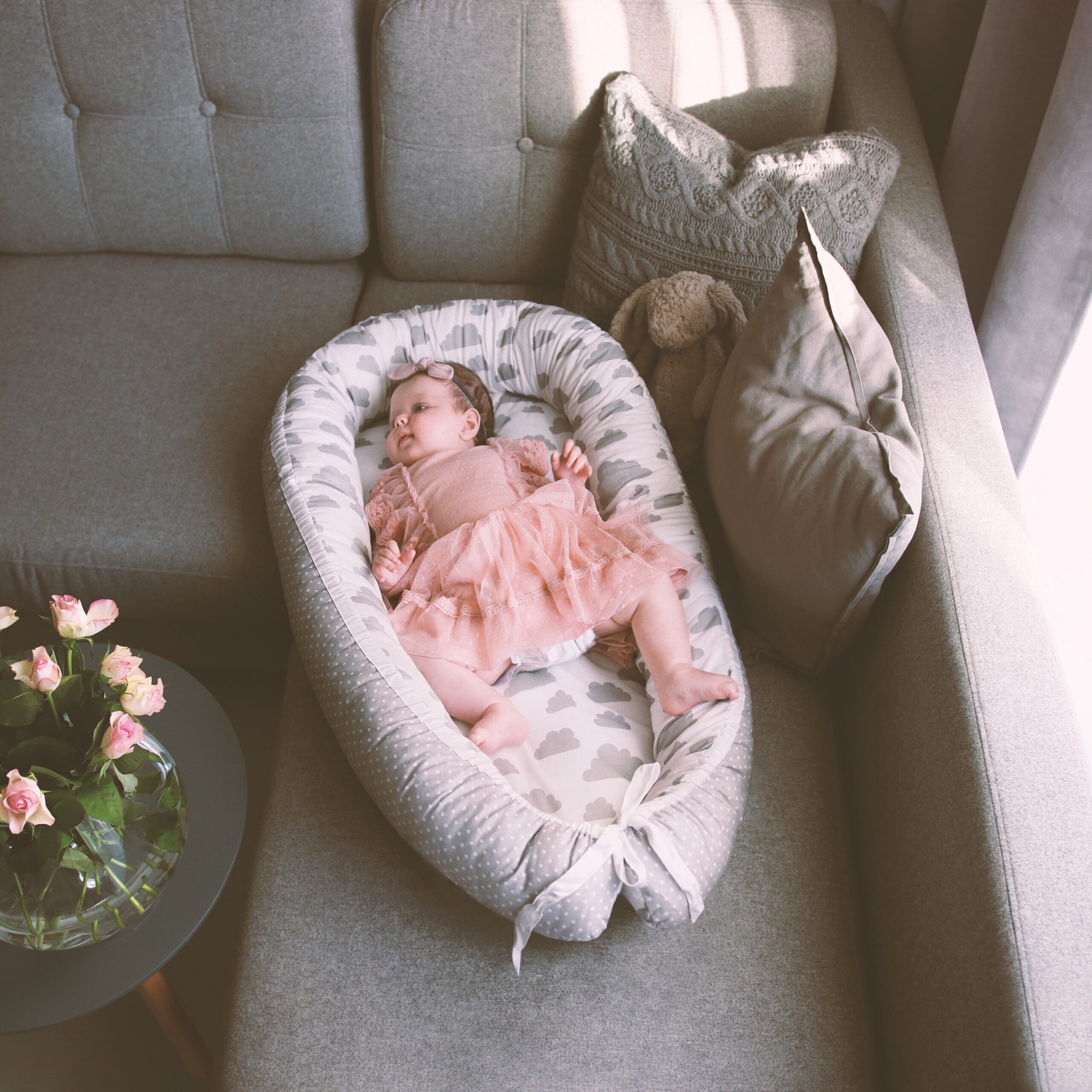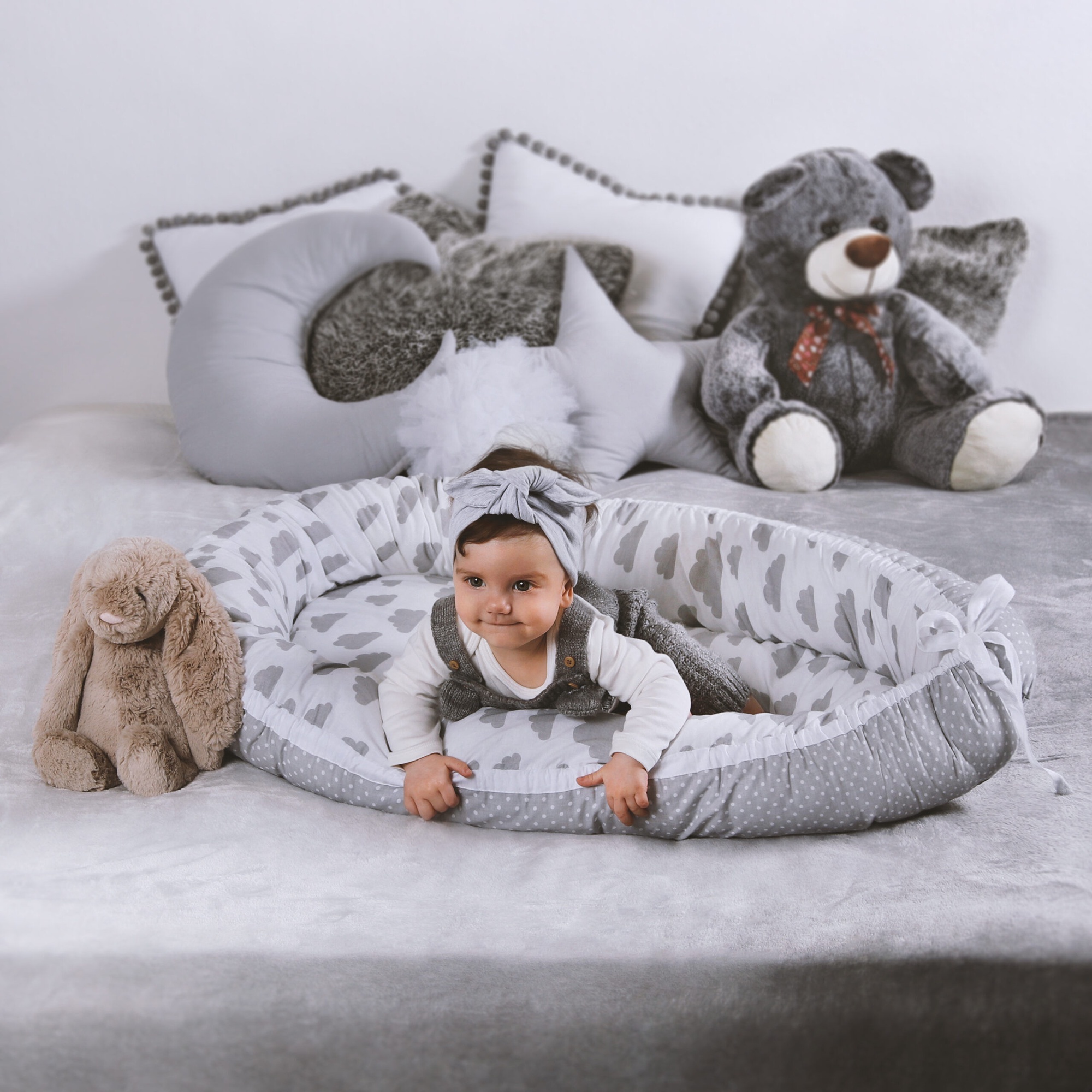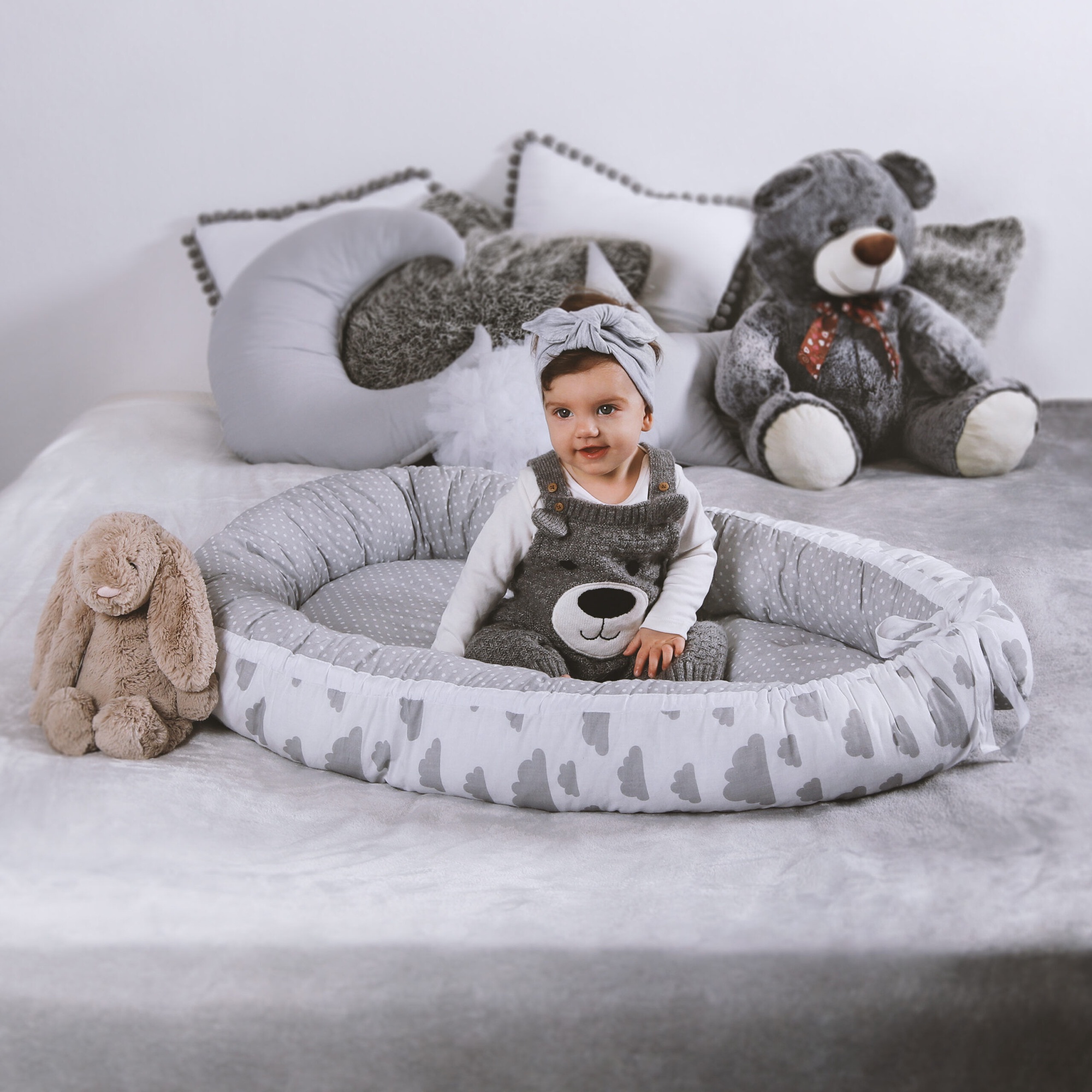 Lulando Multifunctional Baby Nest Grey With Dots/White With Grey Clouds