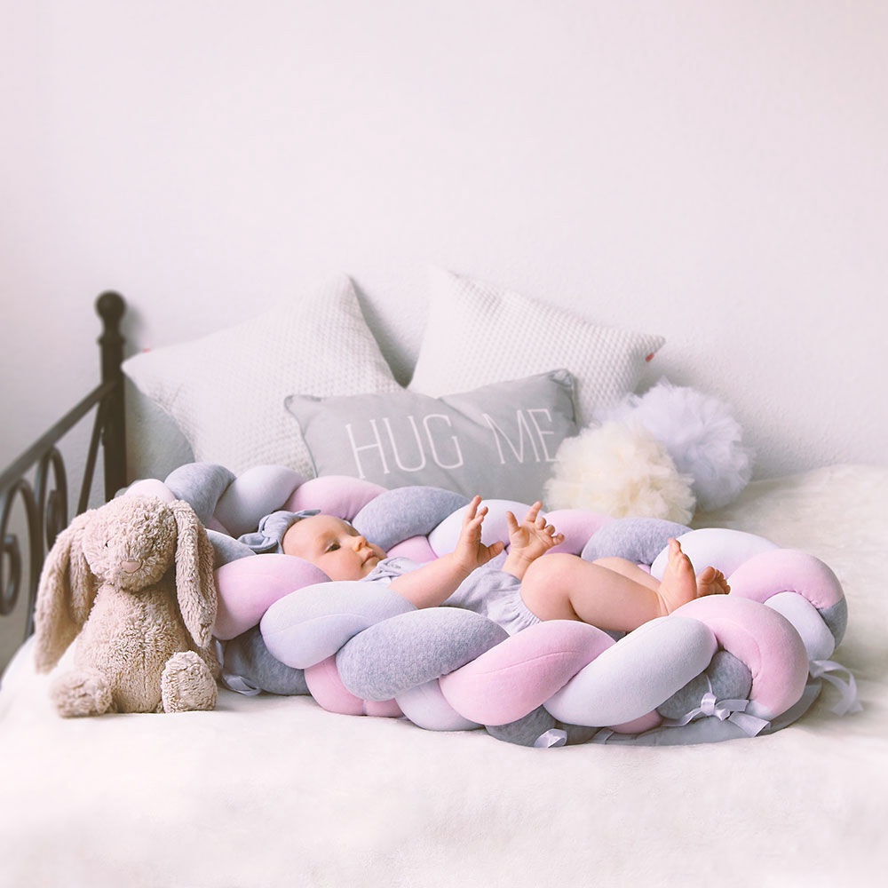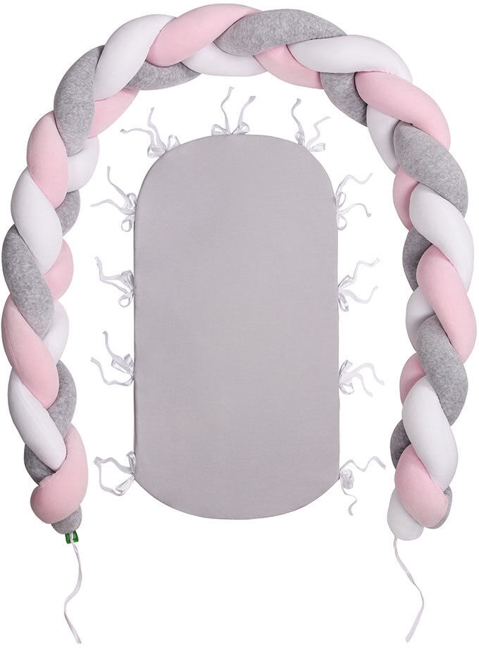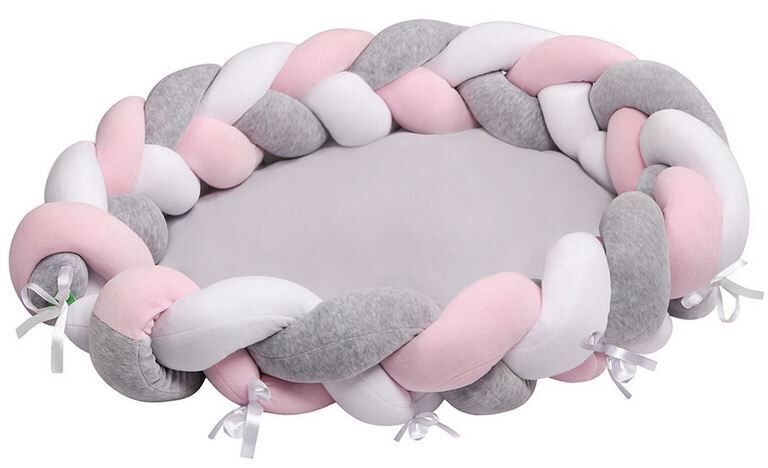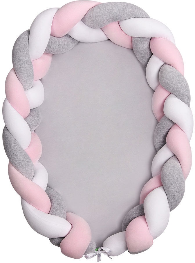 Lulando Multifunctional Braid Welur Baby Nest White/Pink/Grey