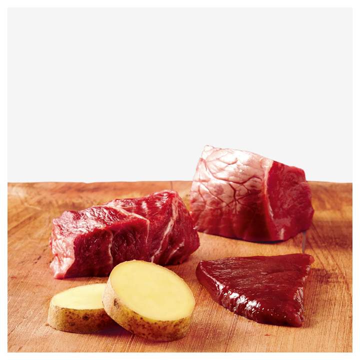 - Ингредиенты говядина 53% (сердце, легкое, мясо, печень, вымя, почки), картофель 10%, хлорид натрия