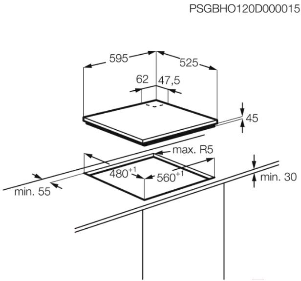 • Ширина панели 59.5 см