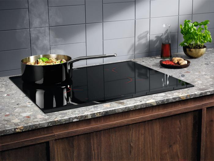 Дизайнскошенный фронт (варочная панель), защита от отпечатков пальцев (духовой шкаф)
