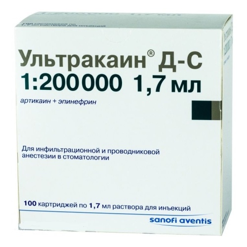 Лекарственное средство Ультракаин Д р-р д/ин. 1,7мл №100 (картридж) (SANOFI) 4030685508740