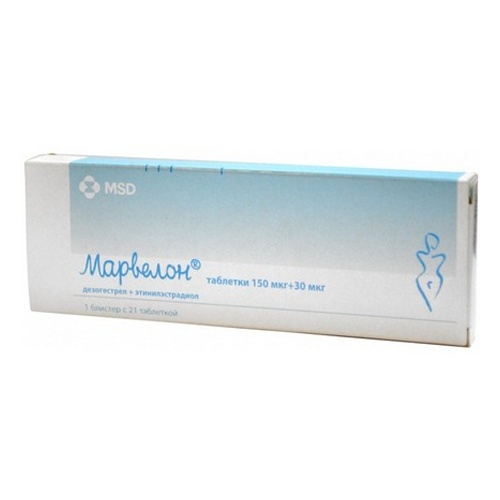 Дозировка Таблетки следует принимать внутрь в порядке, указанном на упаковке, каждый день приблизительно в одно и то же время, запивая небольшим количеством воды, если необходимо. Принимать по 1 таблетки в день в течение 21 дня. Прием таблеток из следующей упаковки следует начинать через 7 дней после окончания предыдущей. В течение этих 7 дней происходит менструальноподобное кровотечение. Обычно оно начинается на 2-3 день после приема последней таблетки и может не прекратиться до начала приема следующей упаковки. Как начинать прием препарата Марвелон Если гормональные контрацептивы не использовались в течение последнего месяца, прием должен начаться в первый день менструального цикла. Можно начать прием препарата на 2-5 день после начала менструального цикла, но в таком случае рекомендуется использовать дополнительный (негормональный) метод контрацепции в течение первых 7 дней приема таблеток в первом цикле. Переход с других комбинированных оральных контрацептивов: желательно начать прием препарата Марвелон на следующий день после приема последней таблетки ранее используемого препарата, содержащего гормоны, в крайнем случае, сразу после перерыва в приеме таблеток или после приема таблетки, не содержащей гормонов. Переход с препаратов, содержащих только прогестаген ("мини-пили", инъекции имплантата). Женщина, принимающая "мини-пили", может перейти на прием препарата Марвелон в любой день; использующая имплантат - в день его удаления; использующая препарат в виде инъекций - в день, когда должна быть следующая инъекция, во всех случаях в течение первых семи дней приема Марвелона рекомендуется использовать дополнительные методы контрацепции. После аборта, сделанного в I триместре: женщина может начинать прием препарата немедленно. Нет необходимости использовать какие-либо дополнительные методы контрацепции. После родов или аборта, сделанного во II триместре, рекомендуется начать прием препарата на 21 или 28 день после родов или аборта, сделанного во II триместре беременности. При начале приема препарата в более поздние сроки рекомендуется в течение первых семи дней приема Марвелон использовать барьерные методы контрацепции. В любом случае, если у женщины после родов или аборта до начала приема Марвелон уже были сексуальные контакты, следует исключить беременность до начала приема препарата или подождать до первой менструации. Как поступать в случае пропуска очередного приема препарата Если прием очередной таблетки задержан менее, чем на 12 ч, надежность контрацепции не снижается. Женщине следует принять таблетку, как только она об этом вспомнила, а последующие таблетки принимать в обычное время. Если прием очередной таблетки задержан более, чем на 12 ч, надежность контрацепции может быть снижена. В этом случае следует руководствоваться следующими правилами: Неделя 1. Женщине следует принять пропущенную таблетку, как только она об этом вспомнила, даже если это означает прием двух таблеток одновременно.
