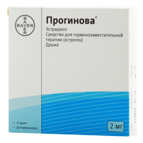 Лекарственная форма драже Состав эстрадиола валерат2 мг Вспомогательные вещества: лактозы моногидрат, крахмал кукурузный, повидон 25000, тальк, магния стеарат, сахароза кристаллическая, повидон 700000, макрогол 6000, кальция карбонат осажденный, глицерол 85%, титана диоксид (Е171), индигокармин (E132), воск монтангликолевый. Фармакодинамика С началом климактерического периода значительно сокращается производство эстрогенов в яичниках. В огранизме женщины возникает недостаток эстрогенов, который может привести к различным недугам и нарушениям общего состояния, пока организм не перестроится на меньшее образование эстрогенов. Недостаток эстрогенов и его сопутствующие явления в период после наступления менопаузы могут быть быстро и надежно устранены путем регулярного приема отсутствующего гормона, содержащегося в лекарственной форме Прогинова. Побочные действия В отдельных случаях может наблюдаться чувство напряженности в молочных железах, болевые ощущения в области желудка, тошнота, головные боли и увеличение массы тела, а также маточные кровотечения. Особенности продажи рецептурные Особые условия Если в редких случаях возникают маточные кровотечения, следует обратиться к лечащему врачу с целью выяснения их причин. Поставить в известность врача при наличии следующих заболеваний: диабет, гипертония, варикозное расширение вен, отосклероз, рассеянный склероз, эпилепсия, порфирия, тетания, малая хорея. Во всех этих случаях, а также при предшествующих воспалениях вен, требуется строгий врачебный контроль. В редких случаях после применения веществ с гормональной активностью, которые содержатся в препарате Прогинова, наблюдалось образование доброкачественных, а еще реже - злокачественных изменений в печени, которые в отдельных случаях привели к опасным для жизни кровотечениям в брюшной полости. Поэтому в случае возникновения необычных ощущений в эпигастральной области, которые не исчезают в скором времени сами по себе, необходимо поставить в известность врача, так как может потребоваться прекращение приема данного препарата. Эффективность лечения эстрогенсодержащими препаратами не подлежит сомнению и научно доказана. В последнее время, однако, были высказаны предположения о том, что применение одних лишь эстрогенов в климактерическом периоде в течение длительного времени может повысить частоту возникновения карциномы эндометрия. Так как этот предполагаемый фактор риска нельзя полностью исключить, гиперплазия эндометрия при лечении одним лишь эстрогеном должна быть исключена, например, дополнительным приемом гормона желтого тела. В этом случае необходимо строго придерживаться предусмотренной врачом схемы дозирования, включая перерывы в применении, продолжительность лечения, а также установленные сроки прохождения гинекологических контрольных обследований. Подробная информация для врача содержится в научном проспекте. Показания Недуги климактерического периода после исчезновения месячных кровотечений или же нерегулярного их наступления после овариэктомии или лучевой кастрации ввиду незлокачественных заболеваний: приливы, испарина, нарушения сна, депрессивные состояния, нервная раздражительность, головные боли, головокружения. Кроме того, препарат Прогинова оказывает положительное воздействие на ча