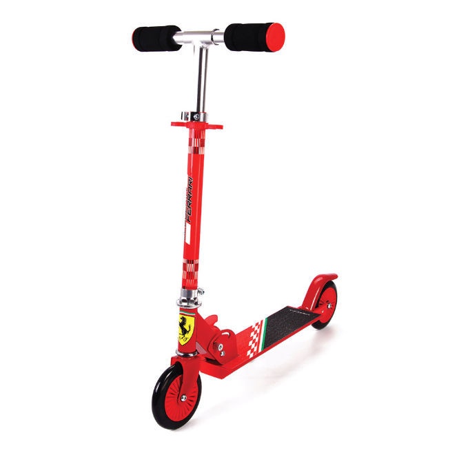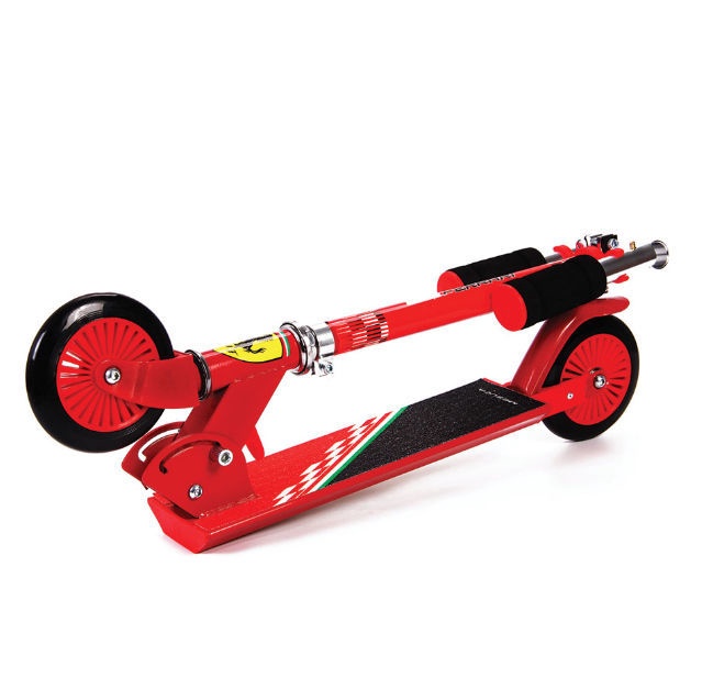 - Дополнительная информация Ferrari двухколесный детский самокат с фирменными эмблемами и дизайном. Задняя тормозная система. Удобный и компактный, складной. Т-образный руль