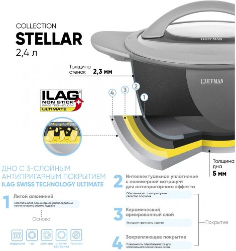 Кастрюля с крышкой GUFFMAN Stellar, 2,4 л (AB-05120RS)