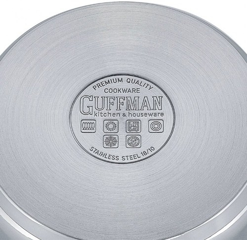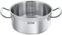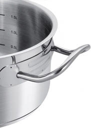 В конструкции кастрюли с крышкой Guffman Jolie, 1,8 л (T02-01418R) есть надежное многослойное капсульное дно толщиной 0,5 см. За счет этого достигается высокая теплоаккумулирующая способность модели. Пищу можно готовить без добавления масла и воды, благодаря чему изделие оптимально для пользователей, придерживающихся сбалансированного рациона питания. Объем содержимого кастрюли удобно контролировать с помощью мерной шкалы на внутренней поверхности модели. Особенности дна позволяют использовать изделие с плитами всех типов, в том числе с индукционными.Материал изготовления кастрюли с крышкой Guffman Jolie, 1,8 л (T02-01418R) — высококачественная нержавеющая сталь. Ударопрочный сплав не подвержен деформации, износу и механическим повреждениям, что продлевает срок службы модели. Изделие оборудовано двумя ручками эргономичной формы, произведенными из металла, которые не нагреваются в ходе приготовления пищи. В комплекте с кастрюлей поставляется стеклянная жаропрочная крышка с отверстием для отвода пара. Это обеспечивает защиту от протечек при кипении воды. Модель не требует специального ухода, поэтому удобна в эксплуатации.