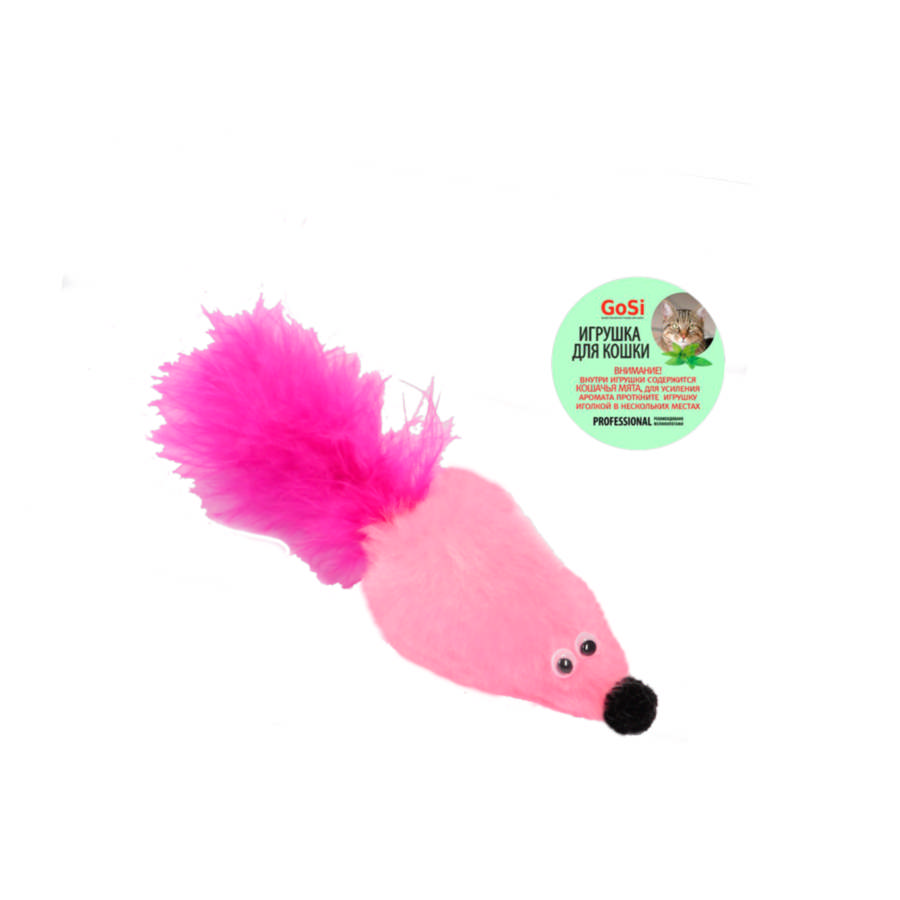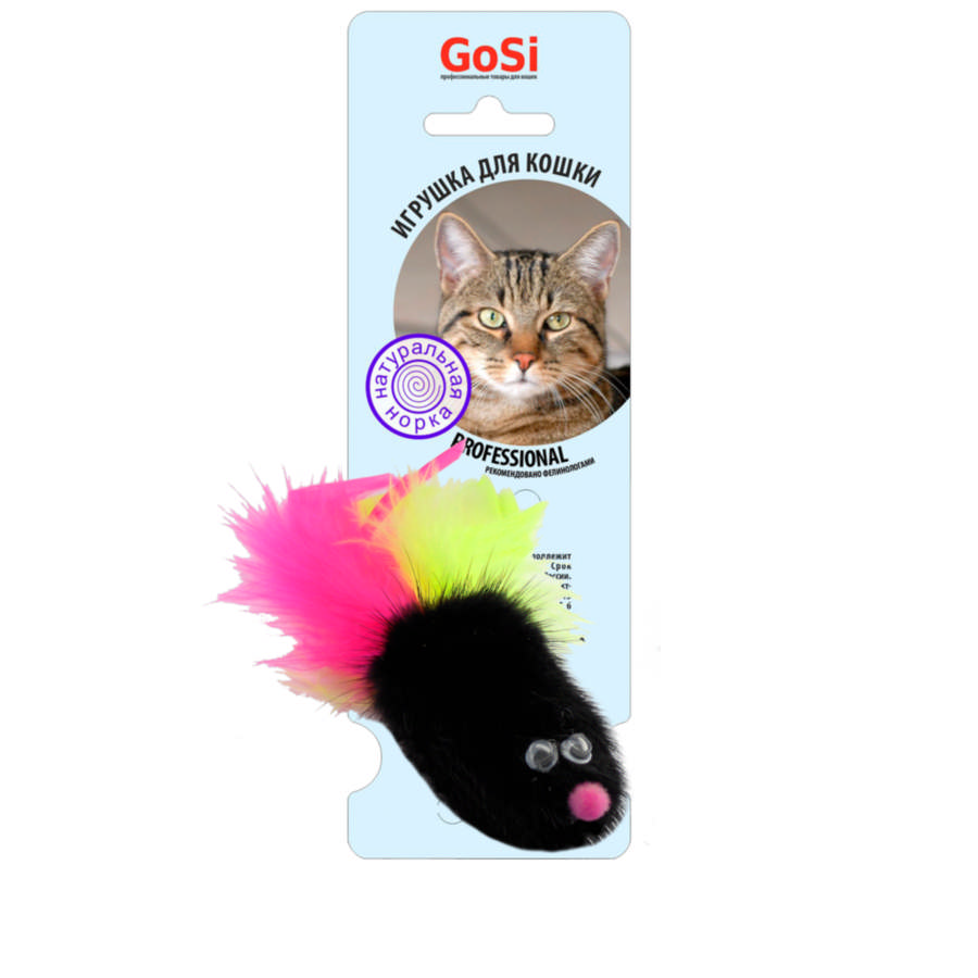 Игрушка для кошек Gosi Мышь норка М с хвостом перо