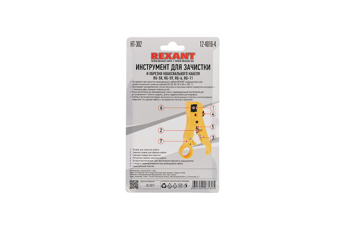 Инструмент для зачистки и обрезки кабелей REXANT HT-302 RG-58, RG-59, RG-6, RG-11 12-4016-4