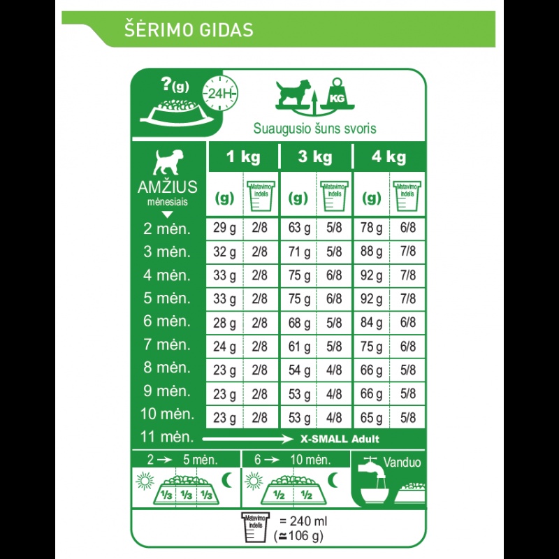 Papildoma informacijaVisavertis sausas šunų ėdalas - Skirtas itin mažų veislių jauniems šunims (suaugusio šuns svoris iki 4kg) - Iki 10 mėnesių amžiaus.
