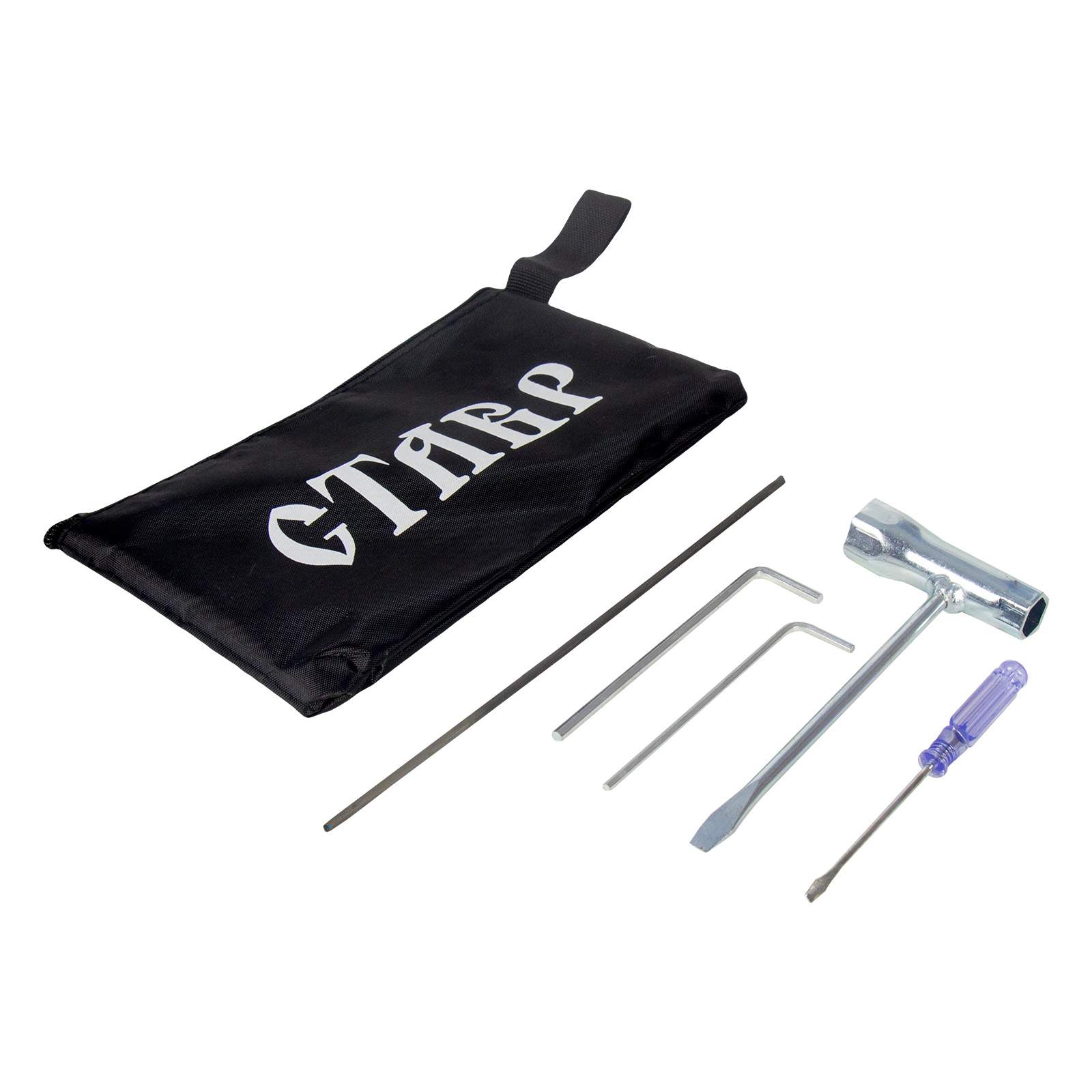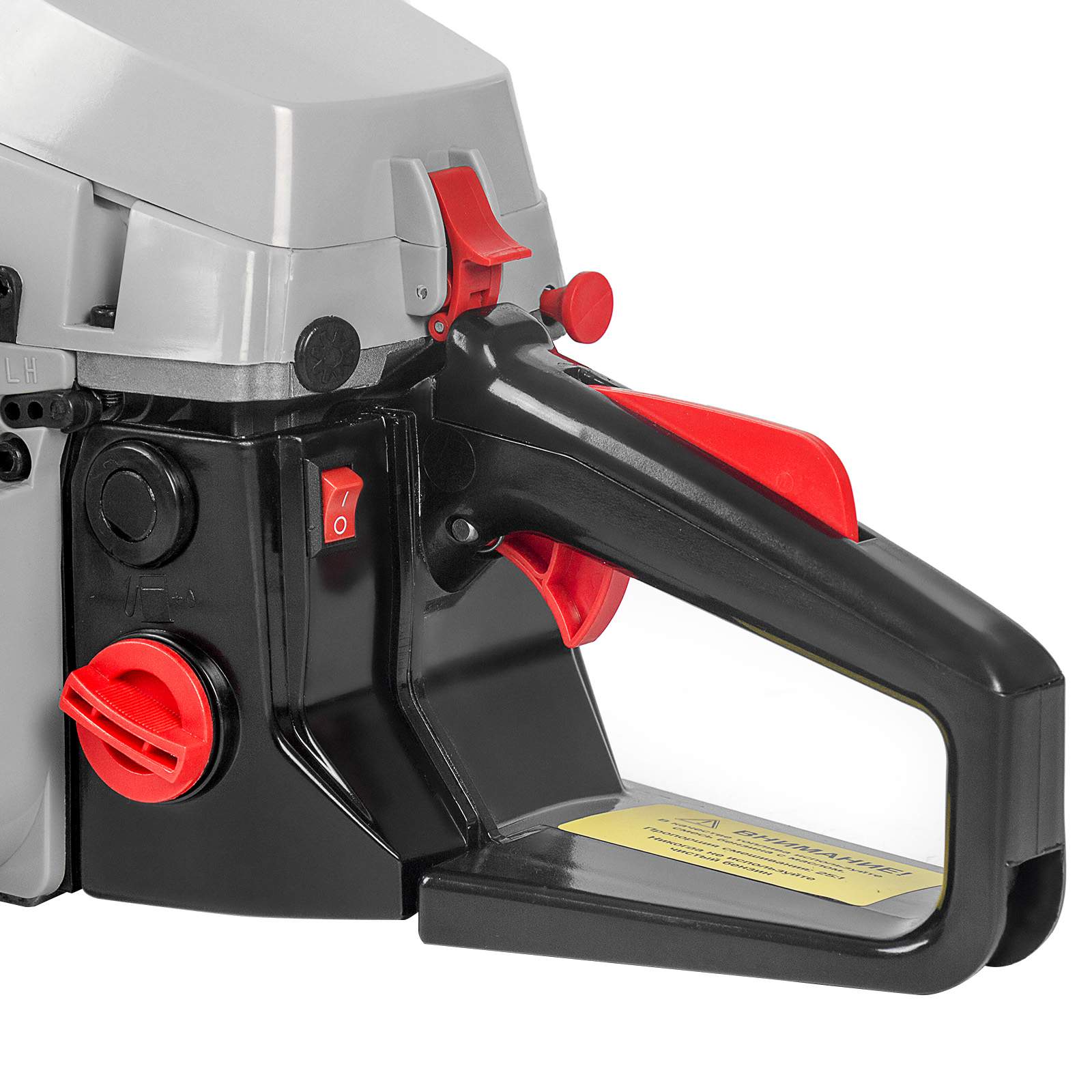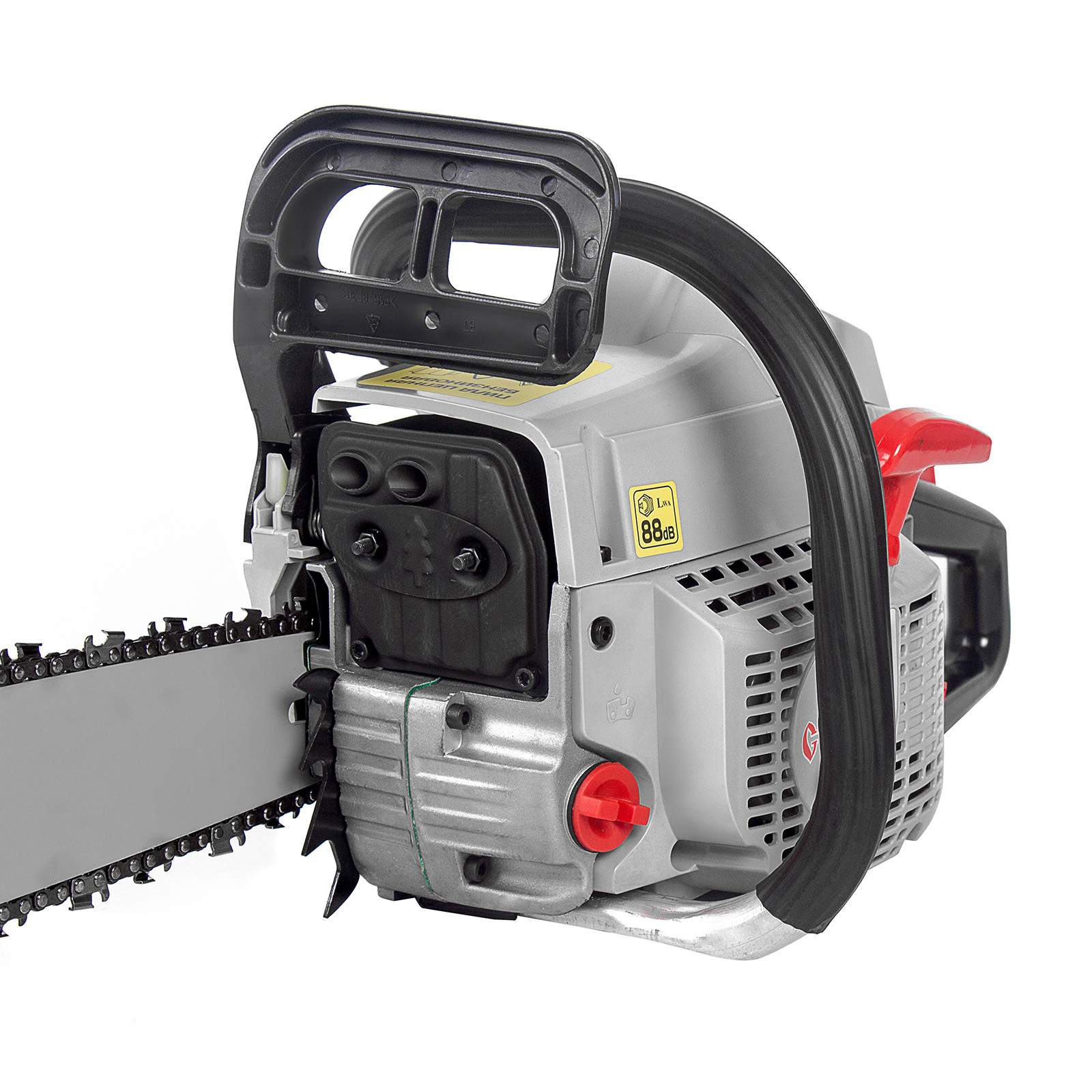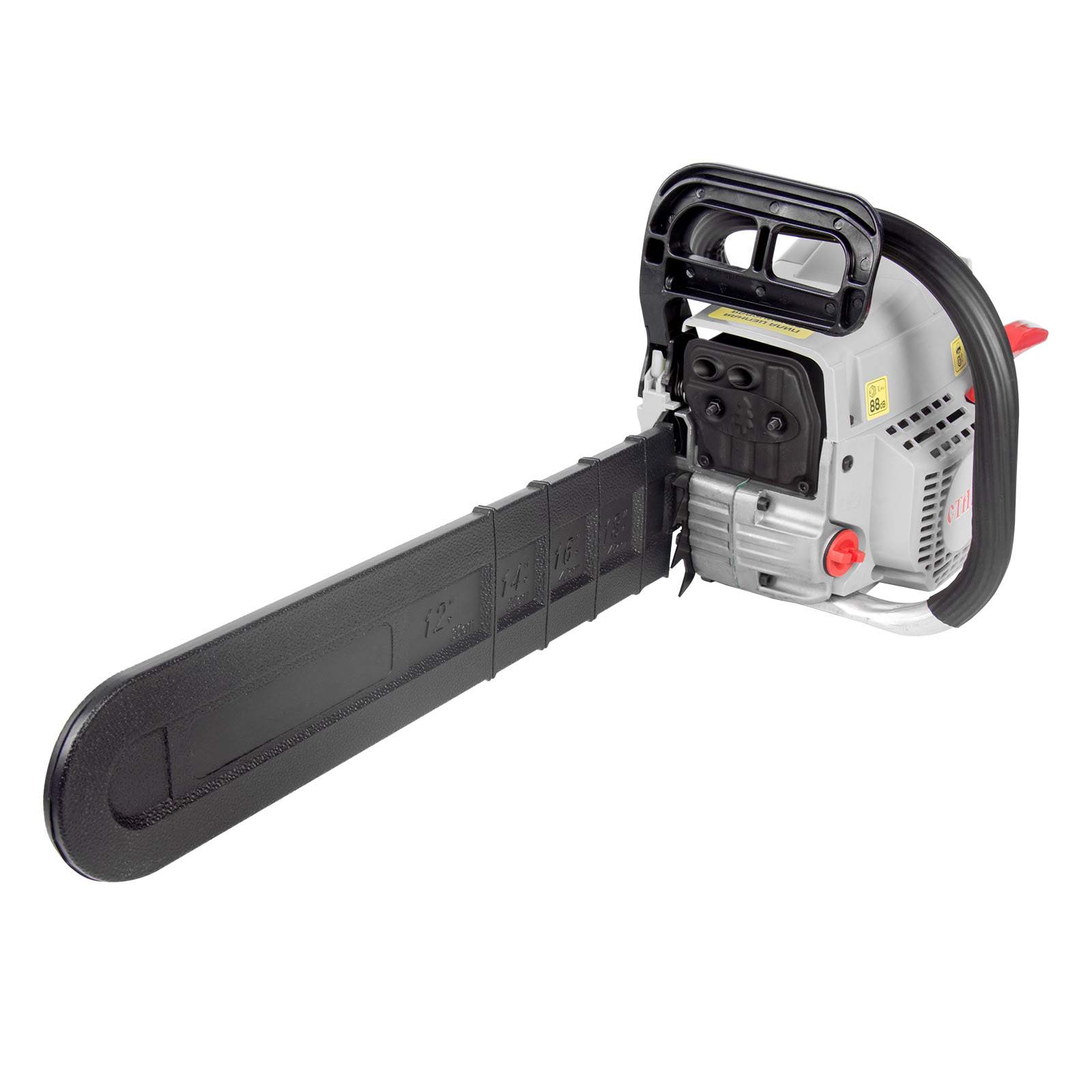 • Комплектация шина, цепь, отвертка, защитный кожух шины, емкость для смешивания топлива, ключ комбинированный, шестигранный ключ 2 шт., напильник, зубчатый упор, сумка для инструмента
