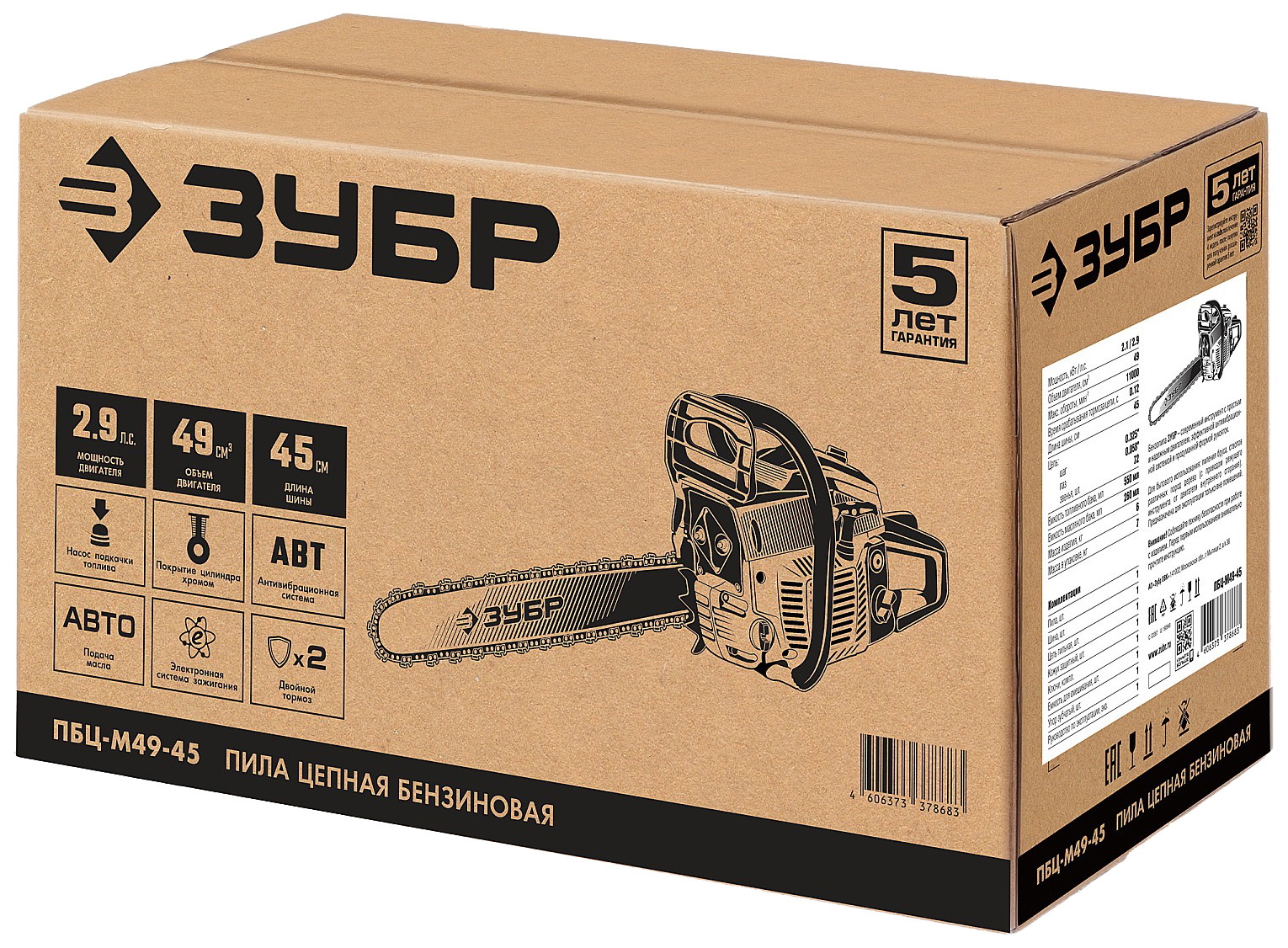Пила цепная бензиновая ЗУБР ПБЦ-М49-45 МАСТЕР